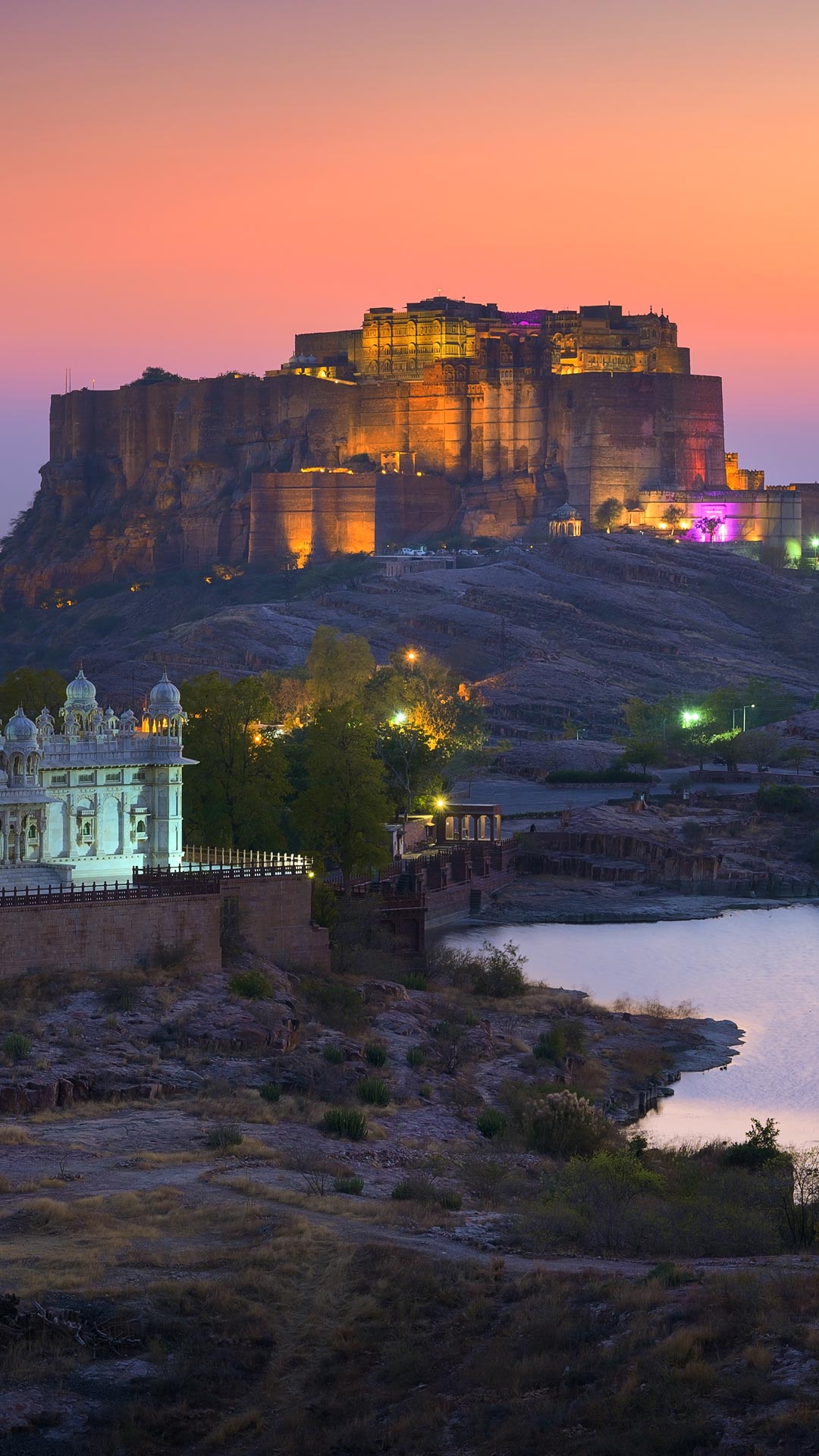 夕阳西下,印度拉贾斯坦邦的焦特布尔市沐浴在温暖的光芒中,一幅神奇的景象徐徐展开。坐落在岩石山顶上的梅兰加尔古堡矗立于这片景色中,这里曾是拉索尔王朝的权力中心,见证了荣耀和挑战。这座城堡始建于1459年,由当时的统治者拉奥·约达创建,至今已经有500多年的历史。