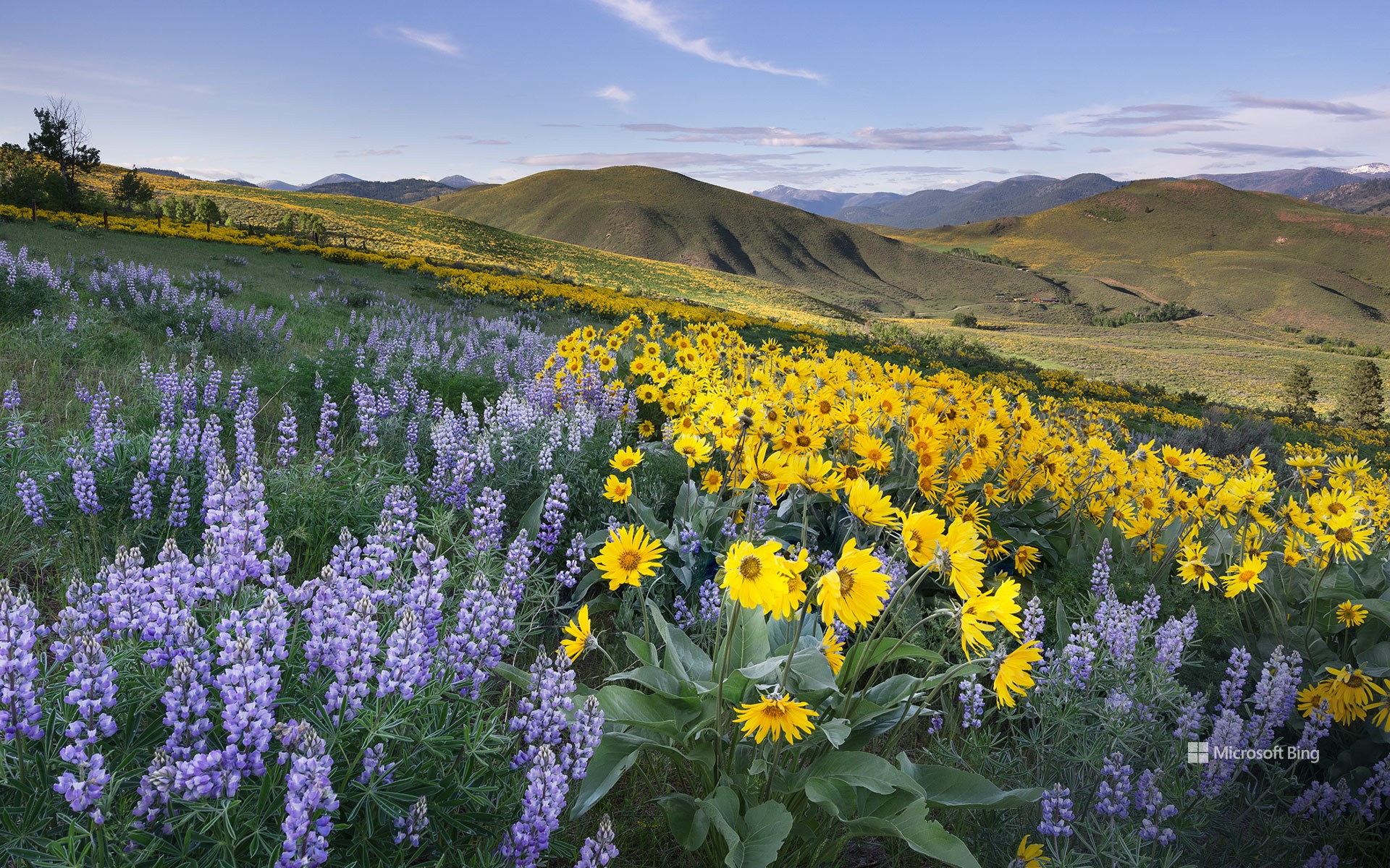如果你想寻觅野花铺满青草地这样生机盎然的地方,华盛顿州北喀斯喀特山脉的梅索谷就是你的理想之地。羽扇豆开着紫色、蓝色和白色的尖尖的花朵,箭叶香根开着金黄色的大花朵,配上崎岖的山脉作为背景,造就了如诗如画般的美景。这些花朵在山谷的生态系统中也发挥着至关重要的作用,羽扇豆是固氮植物,它们通过将大气中的氮转化为邻近植物可以吸收和利用的形态来提高土壤肥力。另一方面,箭叶香根能吸引蜜蜂和蝴蝶等传粉者,有助于植物繁殖,进而促进该地区的生物多样性。无论你是经验丰富的植物学家还是自然爱好者,梅索谷的野花和迷人的荒野一定会给你留下深刻的印象。