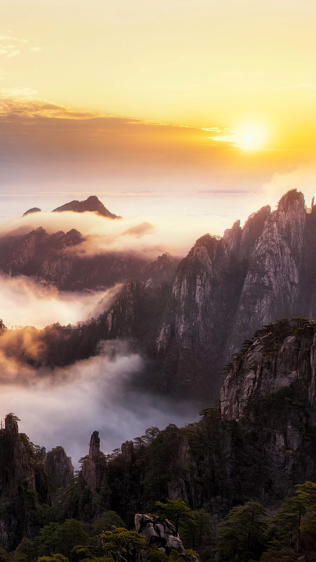 黄山云海不仅本身是一种独特的自然景观,而且还把黄山峰林装扮得犹如仙境,远近山峦,在云海中出没无常,宛若大海中的无数岛屿,时隐时现于“波涛”之上。如果你想要在金秋十月去攀登高峰,品味一览众山小的意境,不妨到中国黄山体验一番。