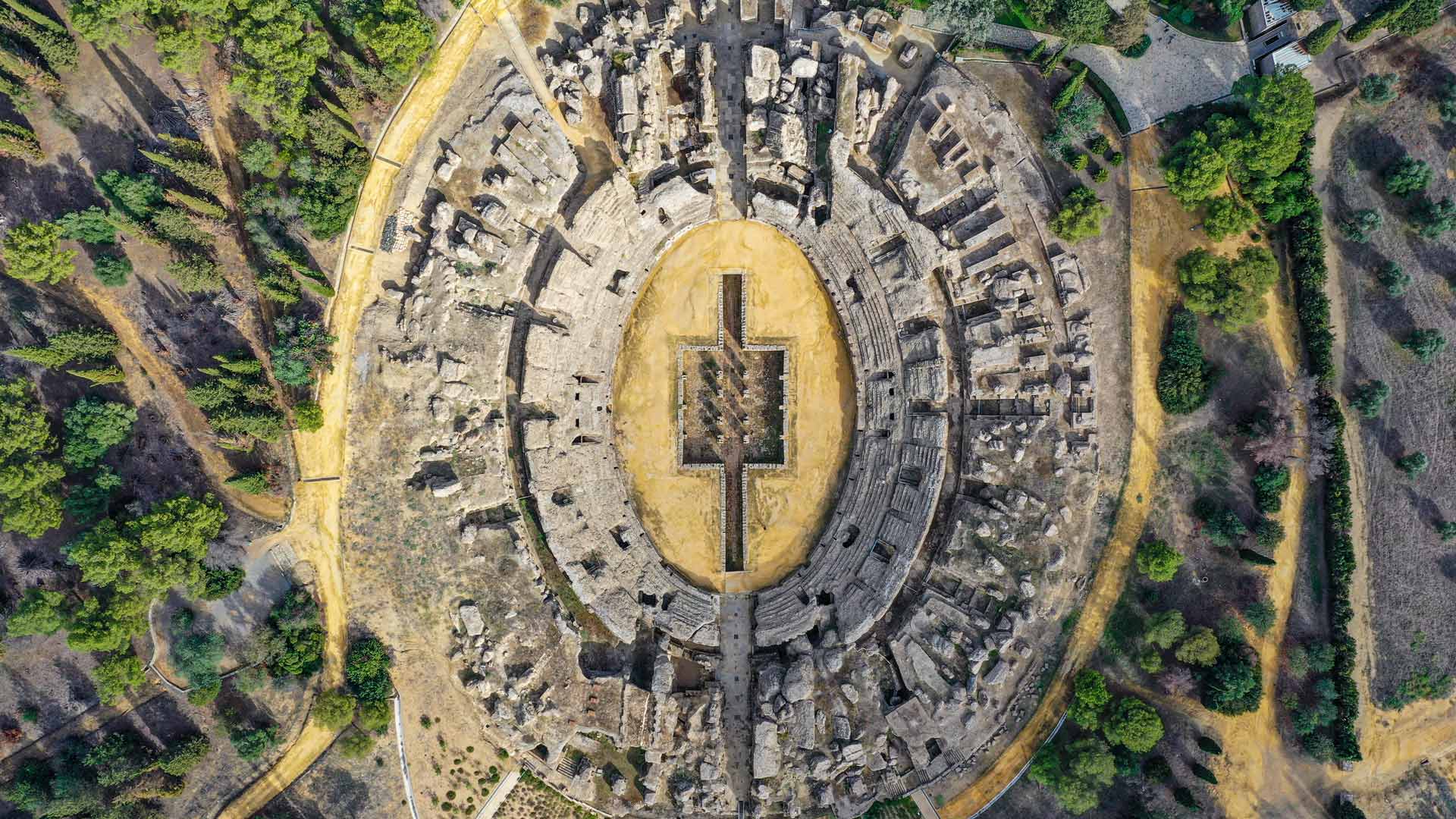 Italica, eine alte römische Stadt in Santiponce, Sevilla, Andalusien, Spanien (© Moses Palermo/Amazing Aerial Agency)