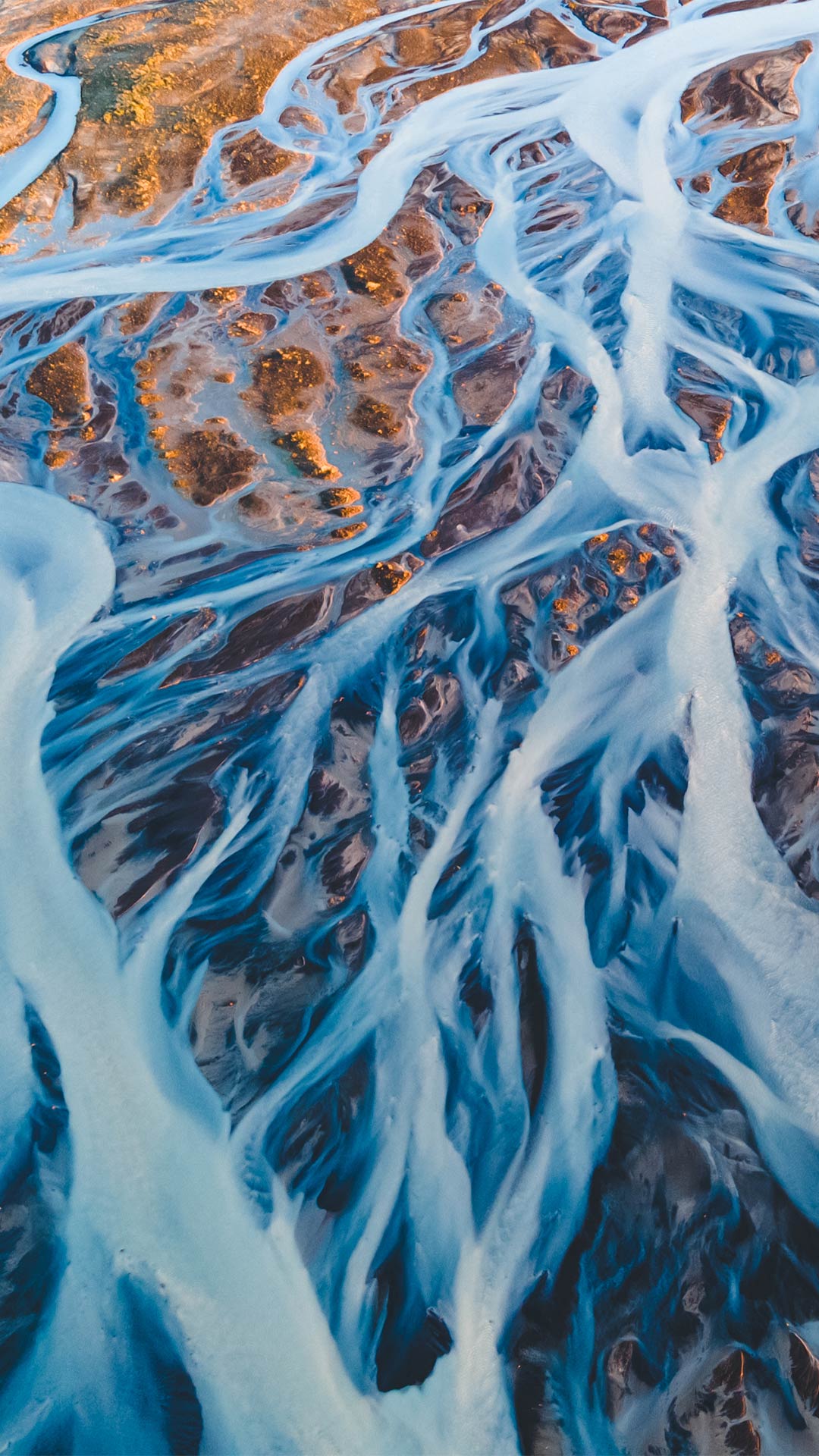 Luftaufnahme von Gletscherflüssen in Island (© rybarmarekk/Shutterstock)