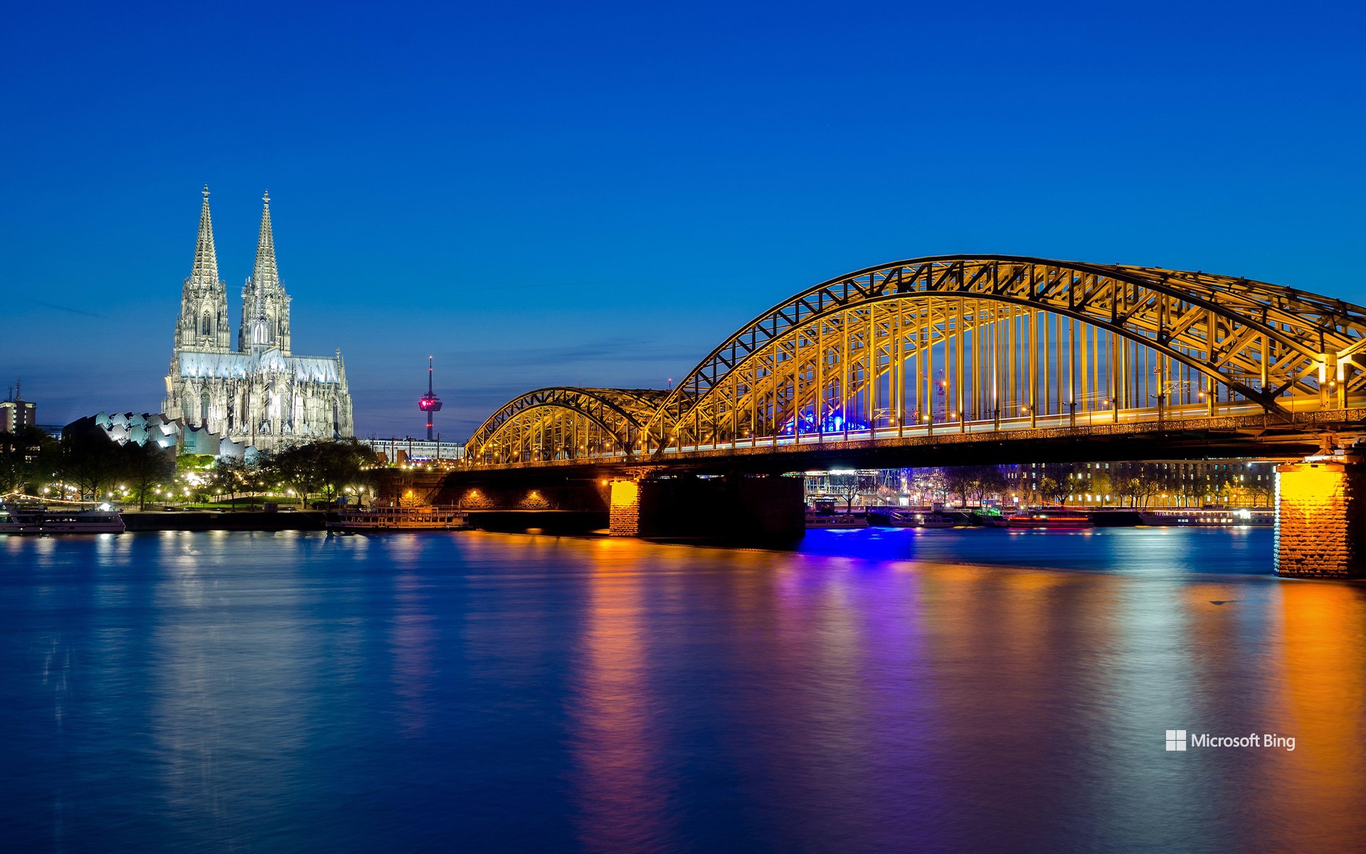 Hohenzollernbrücke mit dem Kölner Dom und dem Rhein bei Sonnenuntergang in Köln (© Prasit Rodphan/Alamy Stock Foto)