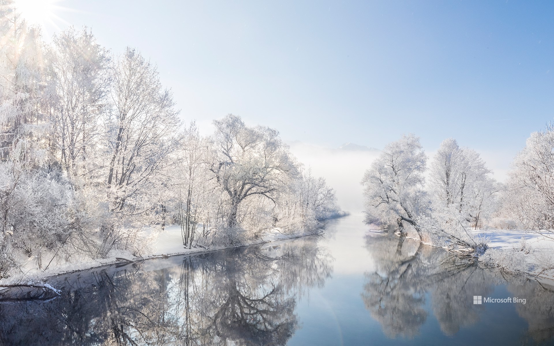 Frostbedeckte Bäume entlang des Flusses Loisach, Kochelsee, Bayern (© Malorny/Getty Images)