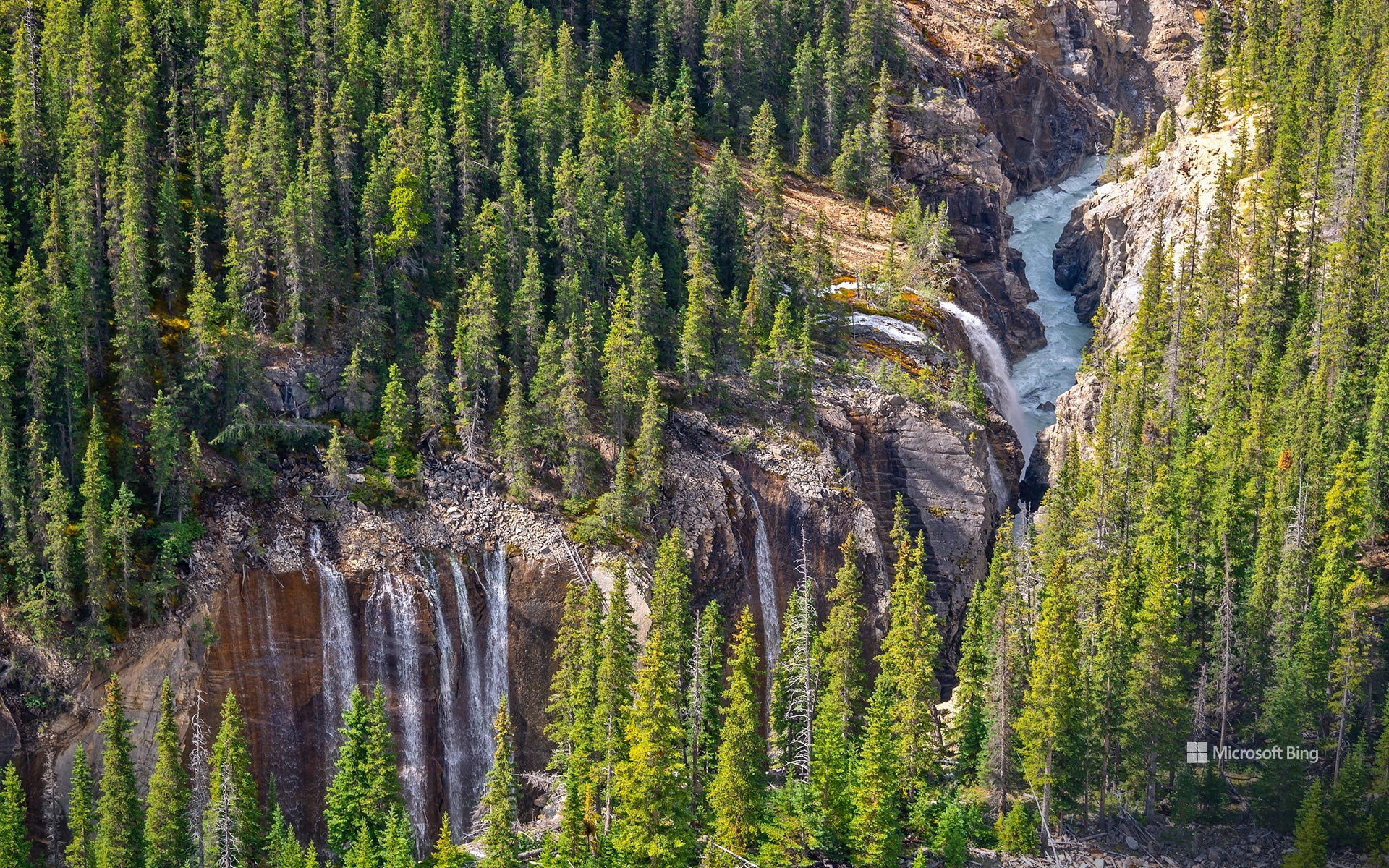 Nestled within the mesmerizing landscapes of Jasper National Park flows the Sunwapta waterfall. Its serene yet strong cascade adds to the beauty of the picturesque surroundings. This waterfall derives its name from the First Nations language and means 'turbulent river'. The water drops from a height of approximately 18 metres, giving the national park an enchanting touch. The waterfall gets its water inlet from the Sunwapta River, plummeting down a steep gorge to flow into a magnificent waterfall. Here it’s easy to spot deer, elk, mountain goats and bighorn sheep. One can even catch a glimpse of nearby Pyramid Mountain and Mount Edith Cavell.