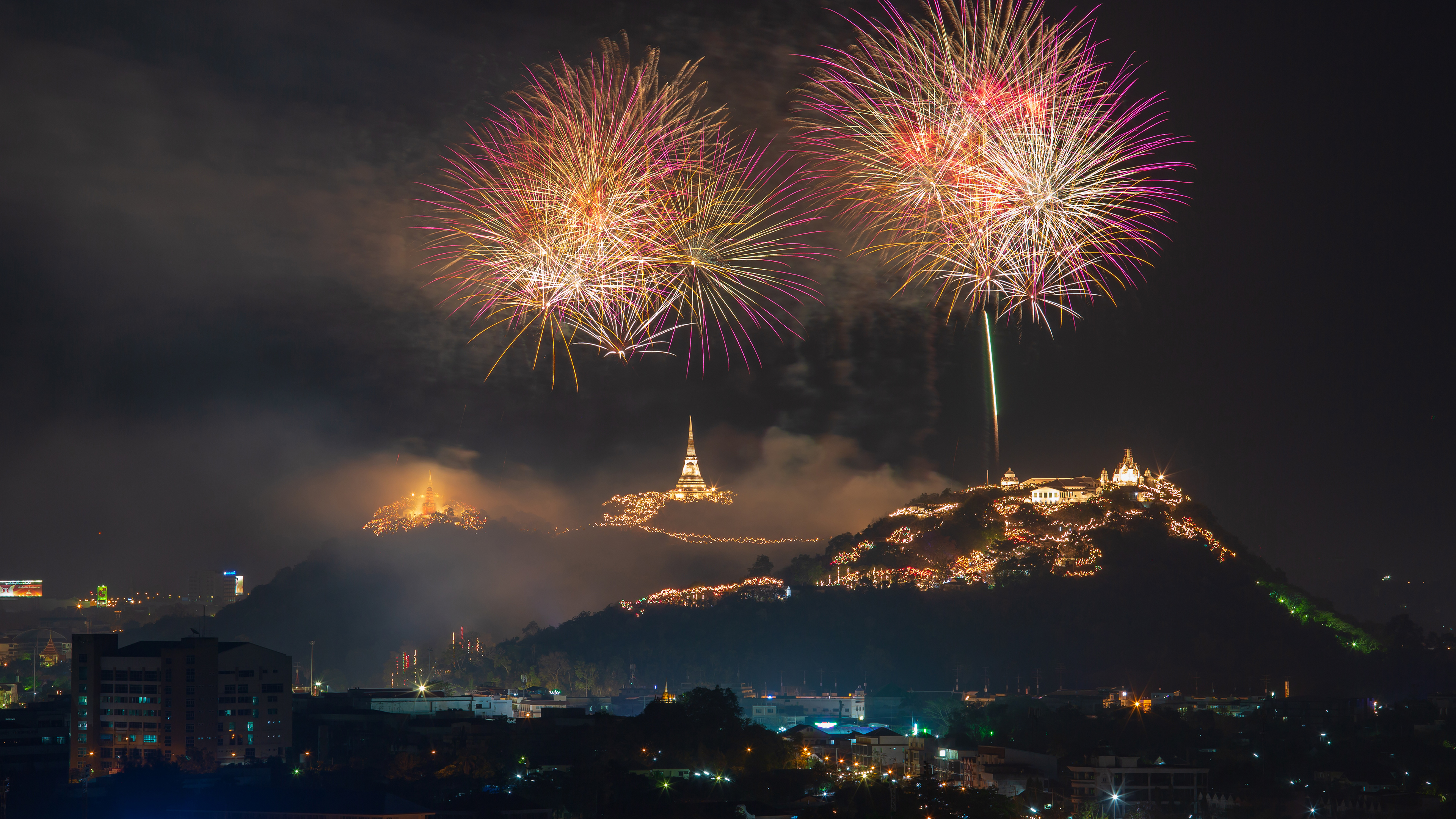 It's time for the final countdown! New Year's Eve is celebrated tonight in many countries to see out the old year and hope for the promises of the new one. The traditions of different nations can be quite creative when it comes to saying farewell to the year. If you're not in Canada watching the dazzling display of fireworks over Niagara Falls, you might smash crockery in Denmark, stuff your mouth with grapes for the countdown in Spain or hang onions outside your door in Greece. Celebrators in Thailand might visit a temple for good luck or watch the fireworks illuminating Phra Nakhon Khiri, also known as the 'holy city hill,' based in the historical park of the same name. Wherever you celebrate, have a great one. See you next year!