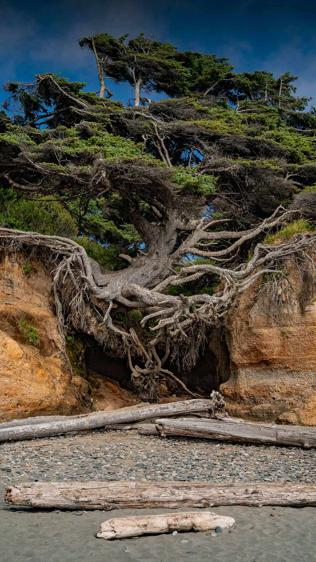 The amazing tree in today's image is the Kalaloch Tree of Life, gracing the shores of Kalaloch Beach in Olympic National Park, Washington, US. Seemingly defying gravity, this towering Sitka spruce measures over 53 metres tall, is nearly 1000 years old, and clings to the sides of a small gully. Beneath its sprawling roots lies the Tree Root Cave, a hidden den where a gentle stream flows into the Pacific Ocean. The soil under the tree is slowly being worn away by the stream, yet, somehow, the Tree of Life continues to grow. Given its will to live, it's easy to understand how this tree earned its nickname.