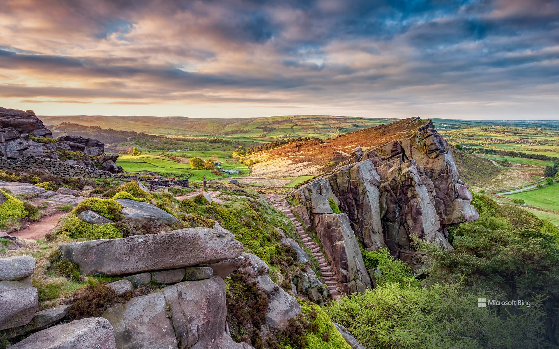 In today's image, the sun encroaches on the Roaches, a rocky ridge in the Peak District, northern England. But what is the origin of this strange name? It comes from the French 'les roches', which simply means 'the rocks.' Rising to a height of 505 metres, it stands above the town of Leek in Staffordshire. The Roaches, part of the Peak District National Park, is a popular destination for climbers and hikers. It offers stunning views over the moorland and, if you're lucky, you may even spot a wallaby! A number of these Australian marsupials escaped from a nearby private zoo in the 1930s, and there are still recorded sightings of the descendants of the original wallabies.