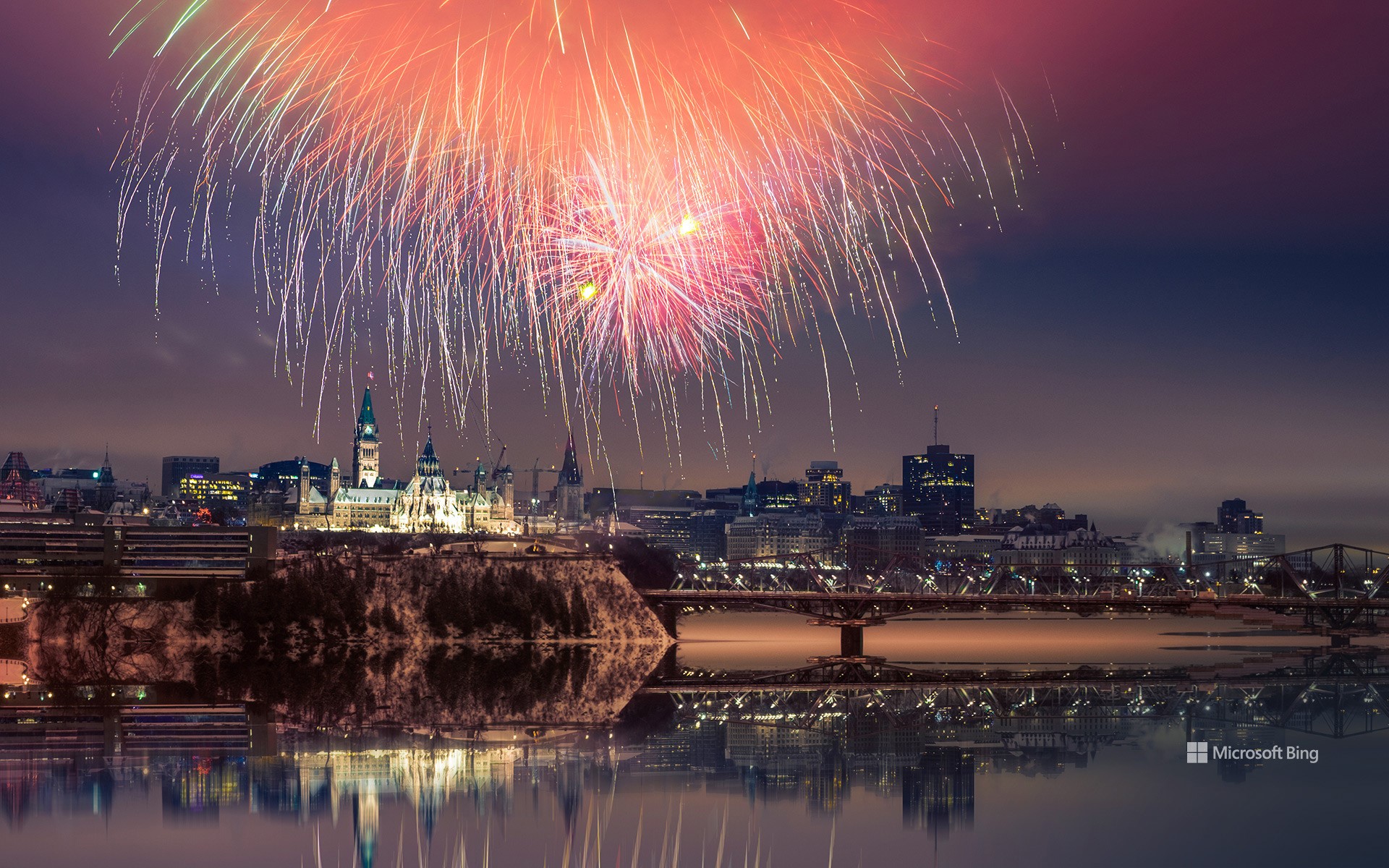 Fireworks over Parliament Hill with reflection, Ottawa (© naibak/Moment/Getty Images)