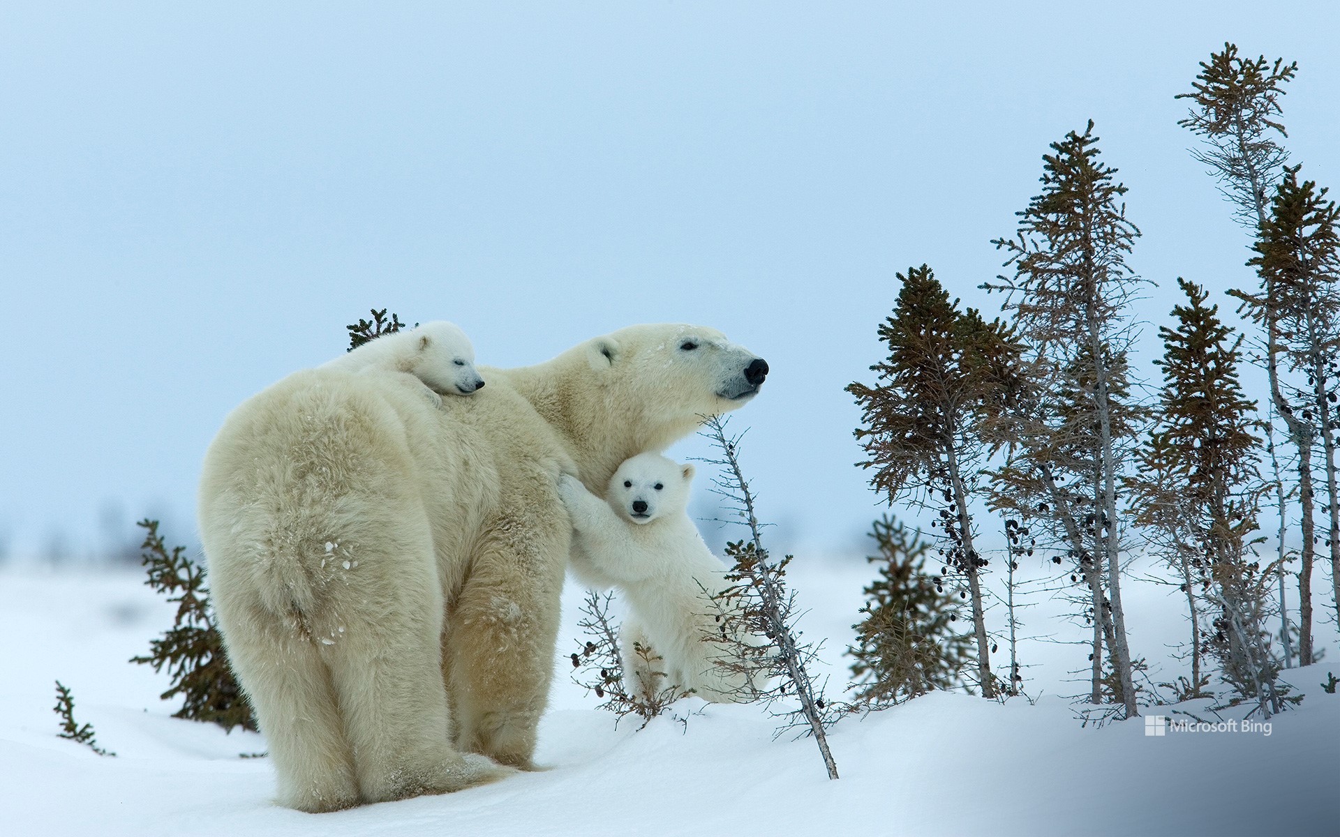 Polar bear mother and cubs, Churchill, Manitoba, Canada (© Thorsten Milse/Getty Images)