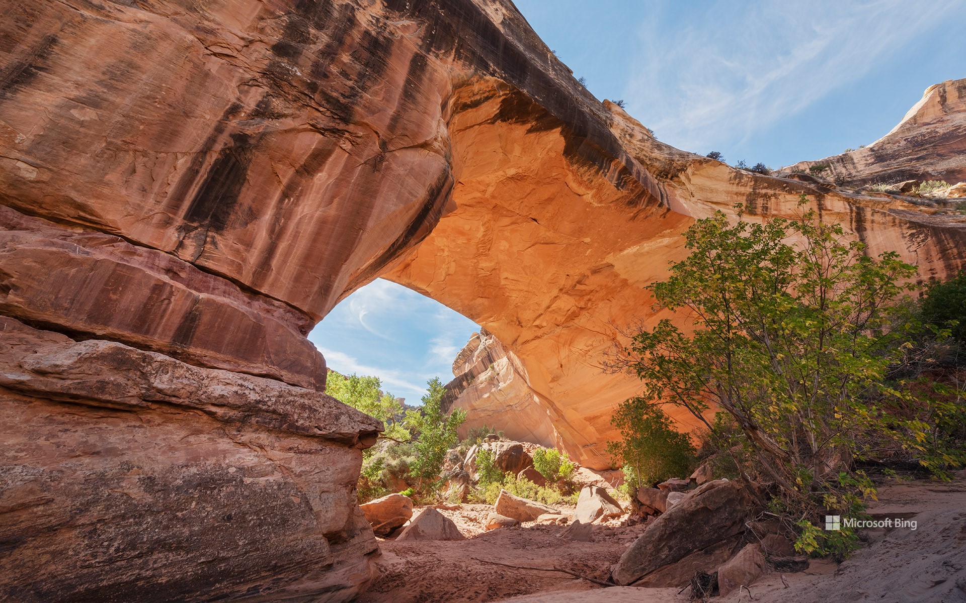 Within the remote canyons of southeastern Utah, United States, Natural Bridges National Monument highlights the power of erosion and the passage of time. Shaped by the relentless forces of wind and water, this monument features three magnificent natural bridges—Sipapu, Kachina and Owachomo. These bridges were named to honour the Ancestral Puebloans who once lived here. Sipapu is the largest bridge, with a massive opening that could almost fit the dome of the United States Capitol. Kachina, pictured here, is equidistant from Sipapu and Owachomo. It was named after the petroglyphs and pictographs found at its base. Owachomo is believed to be the oldest of the three. Its thin, arching structure suggests it may eventually collapse.