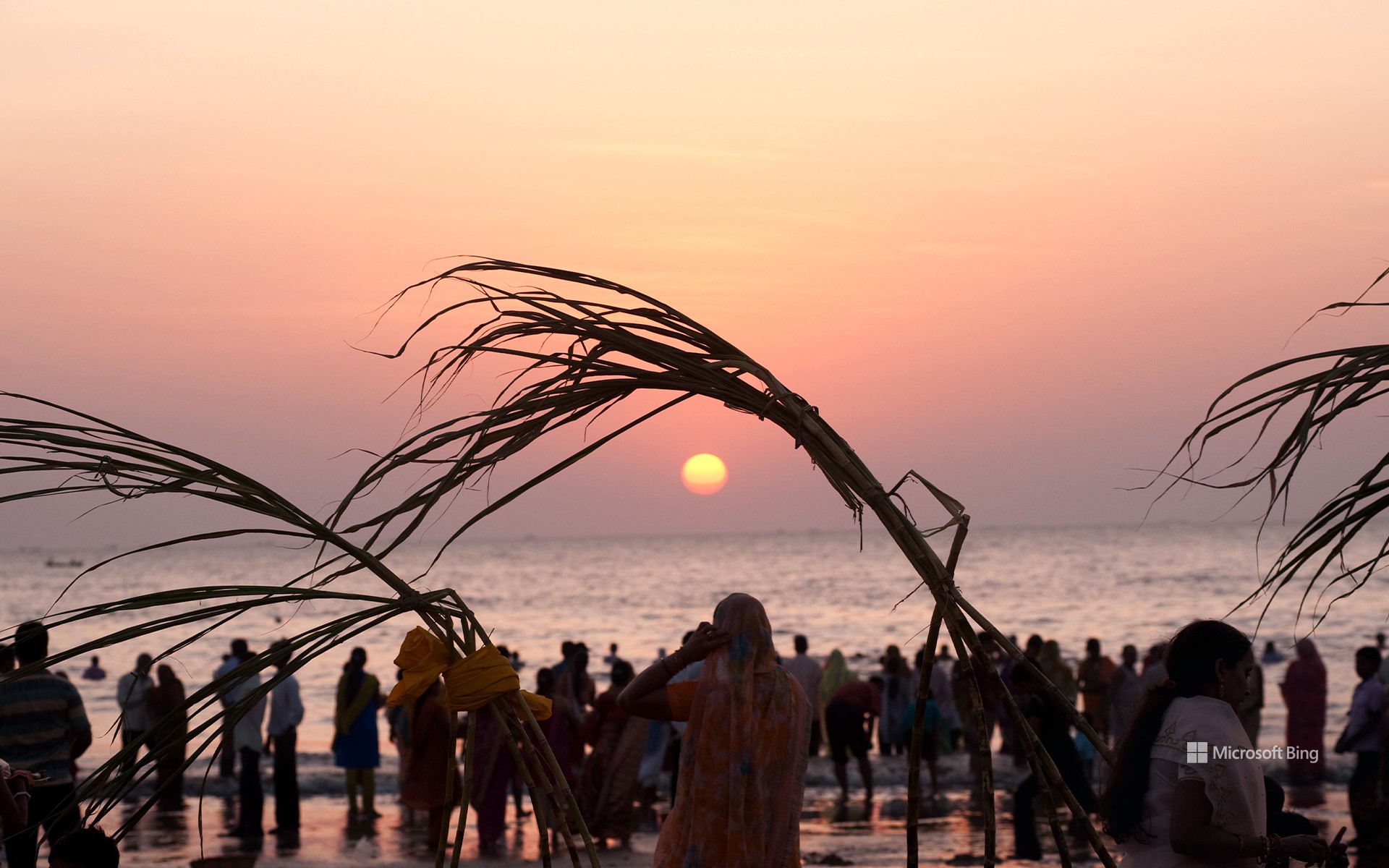 People worshipping the sun on Chhath, at Juhu Beach, Mumbai, Maharashtra (© Dinodia Photo/Getty Images)