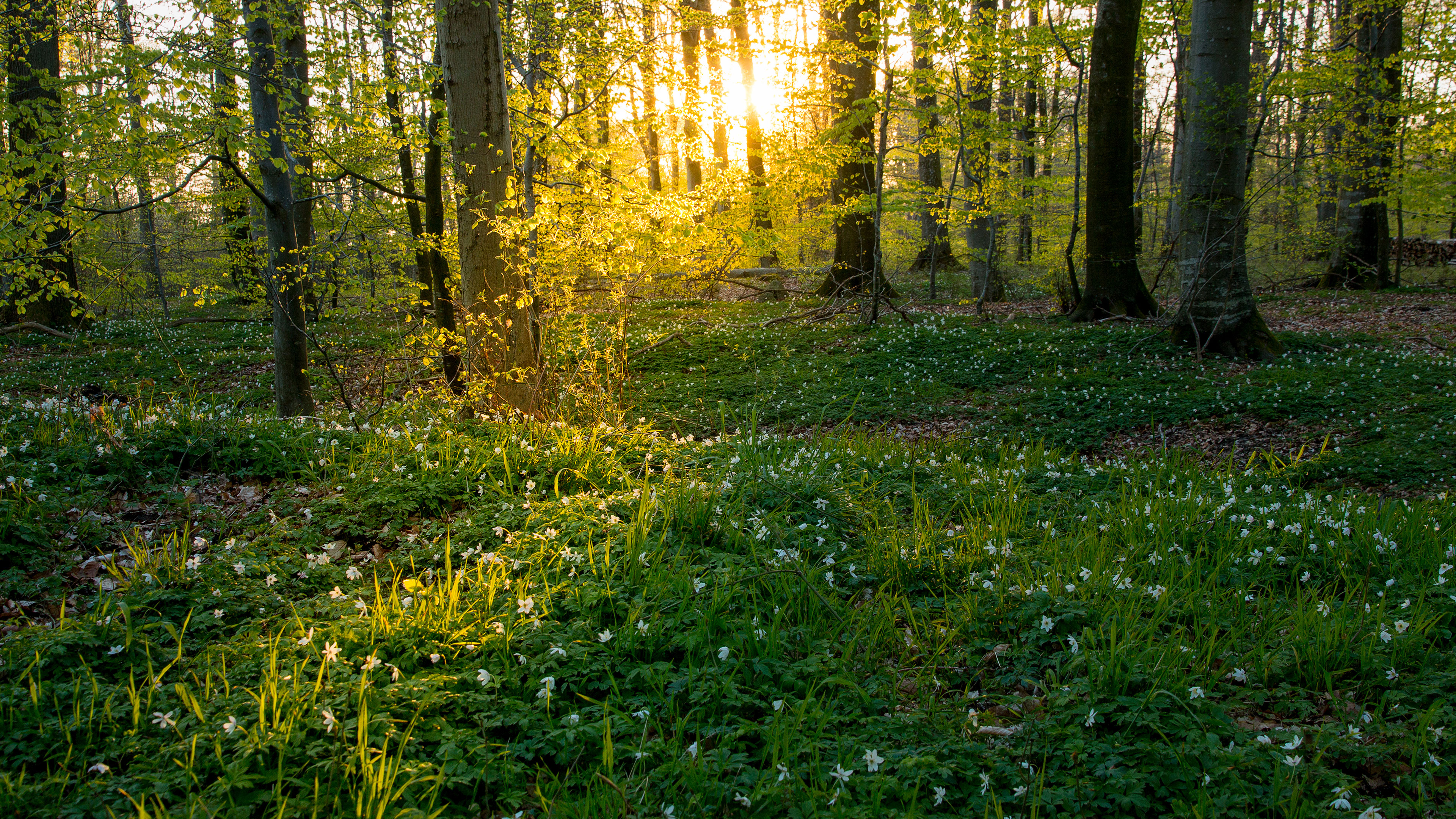 Beech trees and wild anemones, Jutland, Denmark (© Nick Brundle Photography/Getty Images)