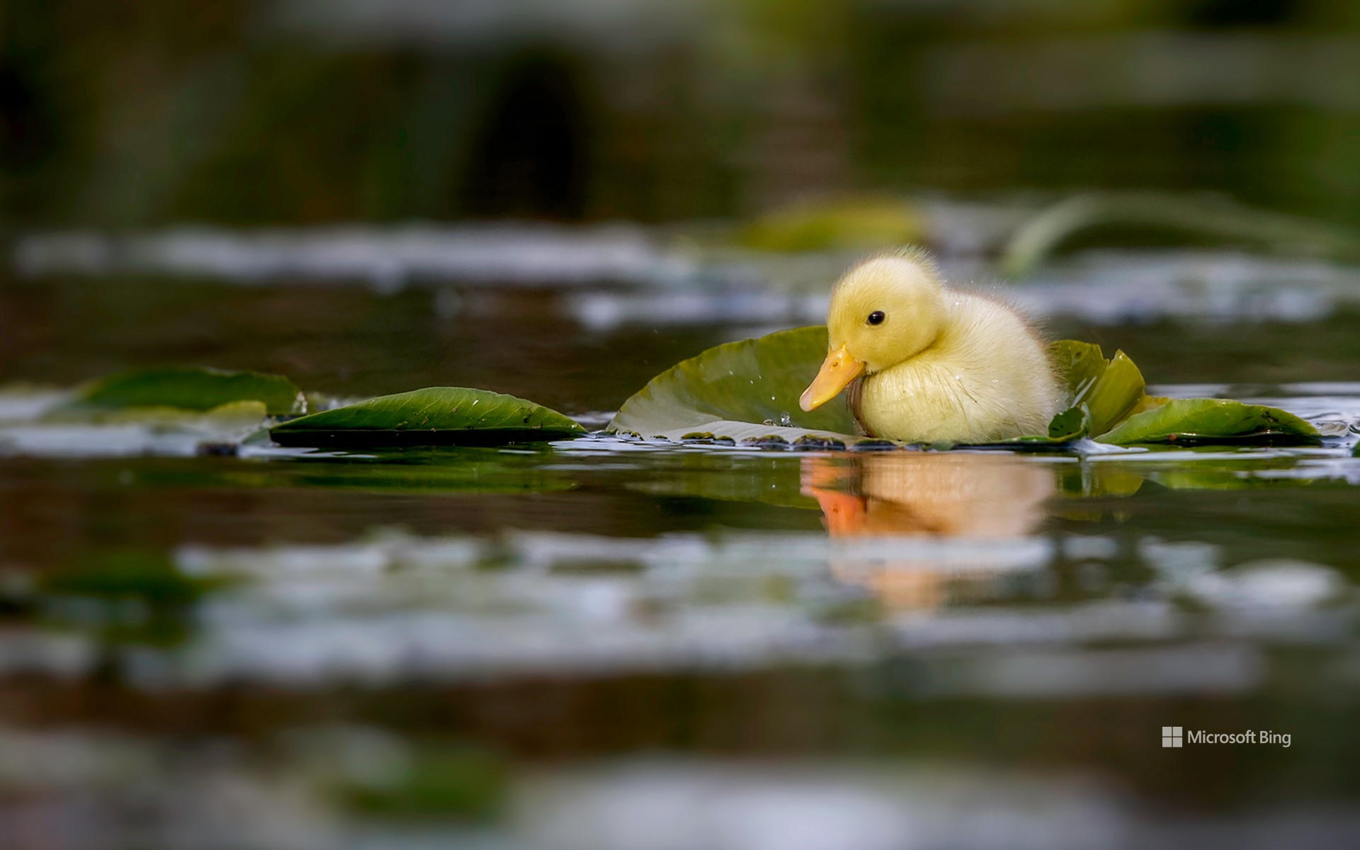 A duckling swimming in a water meadow, Suffolk, England (© Nick Hurst/Getty Images)