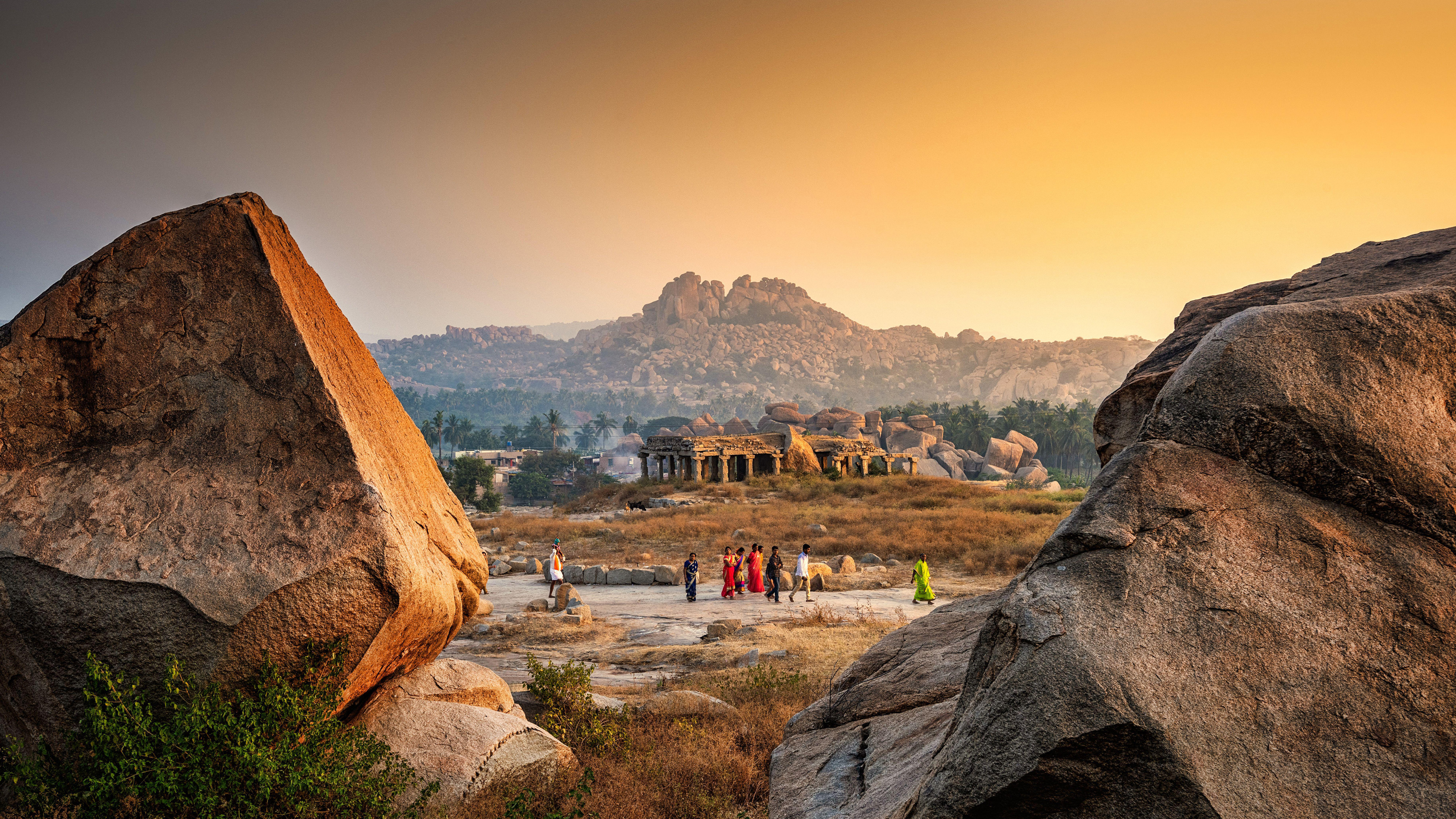 Hampi es un lugar de Karnataka (India) declarado Patrimonio de la Humanidad por la UNESCO. El conjunto de monumentos, templos antiguos, majestuosos palacios e intrincadas ruinas, son restos de la que fue capital del Imperio Vijayanagara, que gobernó esta zona entre los siglos XIV y XVI. Durante el reinado de Krishnadevaraya, de 1509 a 1529, la ciudad experimentó una importante expansión y se llenó de arte y arquitectura, atrayendo a visitantes y comerciantes de todo el mundo. Sin embargo, Hampi perdió su encanto en 1565, cuando fue derrotada en la batalla de Talikota.