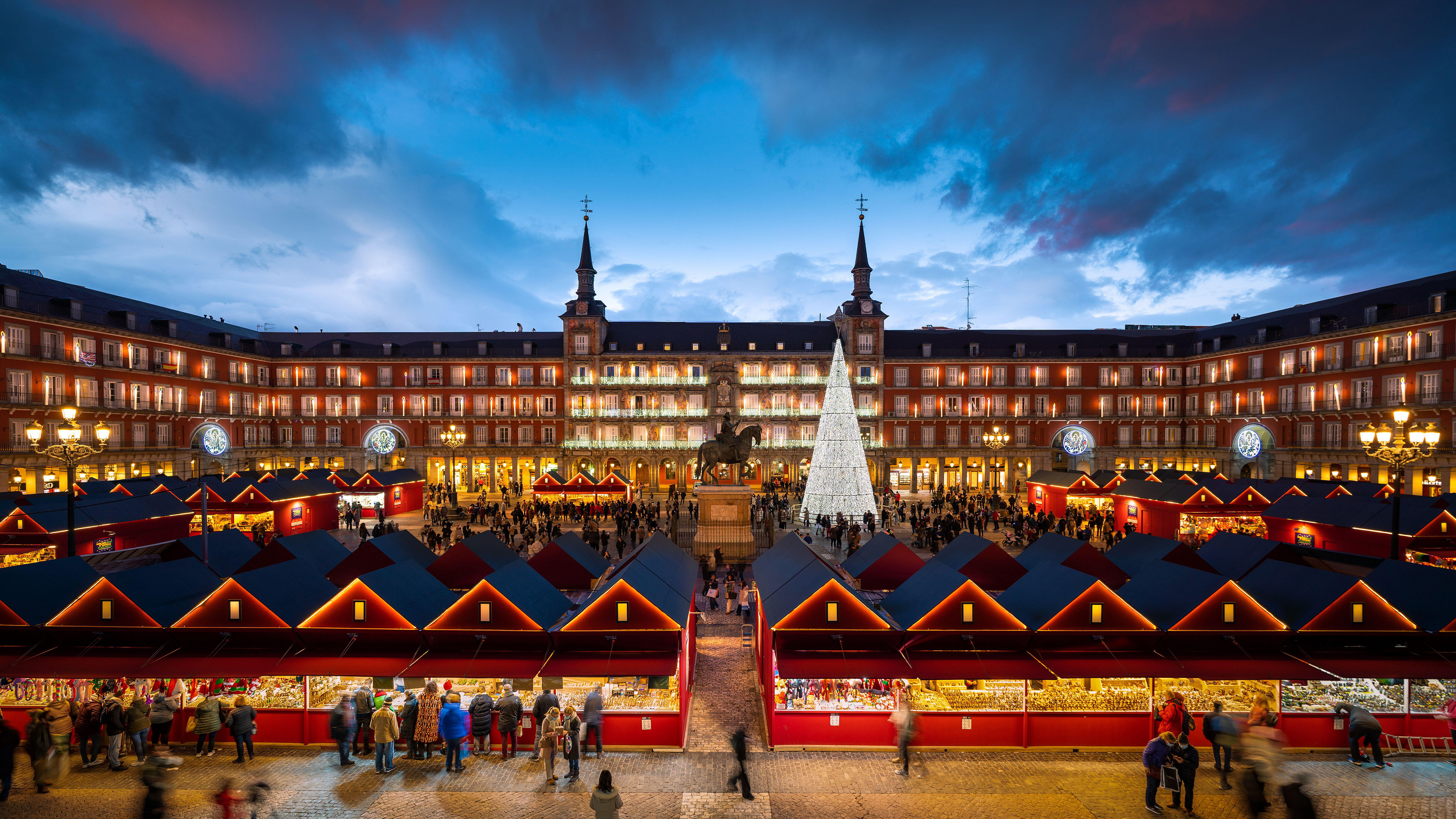 Mercadillo navideño en la Plaza Mayor, Madrid, España (© Mattia Bicchi/Alamy Stock Photo)
