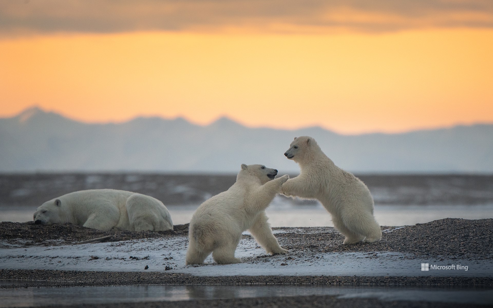 Estos depredadores viven y cazan en el hielo del Ártico. Se alimentan principalmente de focas, pero también de belugas, renos y otros animales árticos. Los osos polares de la imagen de hoy están en Kaktovik, una pequeña comunidad ballenera inupiat de Alaska. Los osos visitan el pueblo durante el otoño, atraídos por los restos que dejan en las calles los cazadores de ballenas.