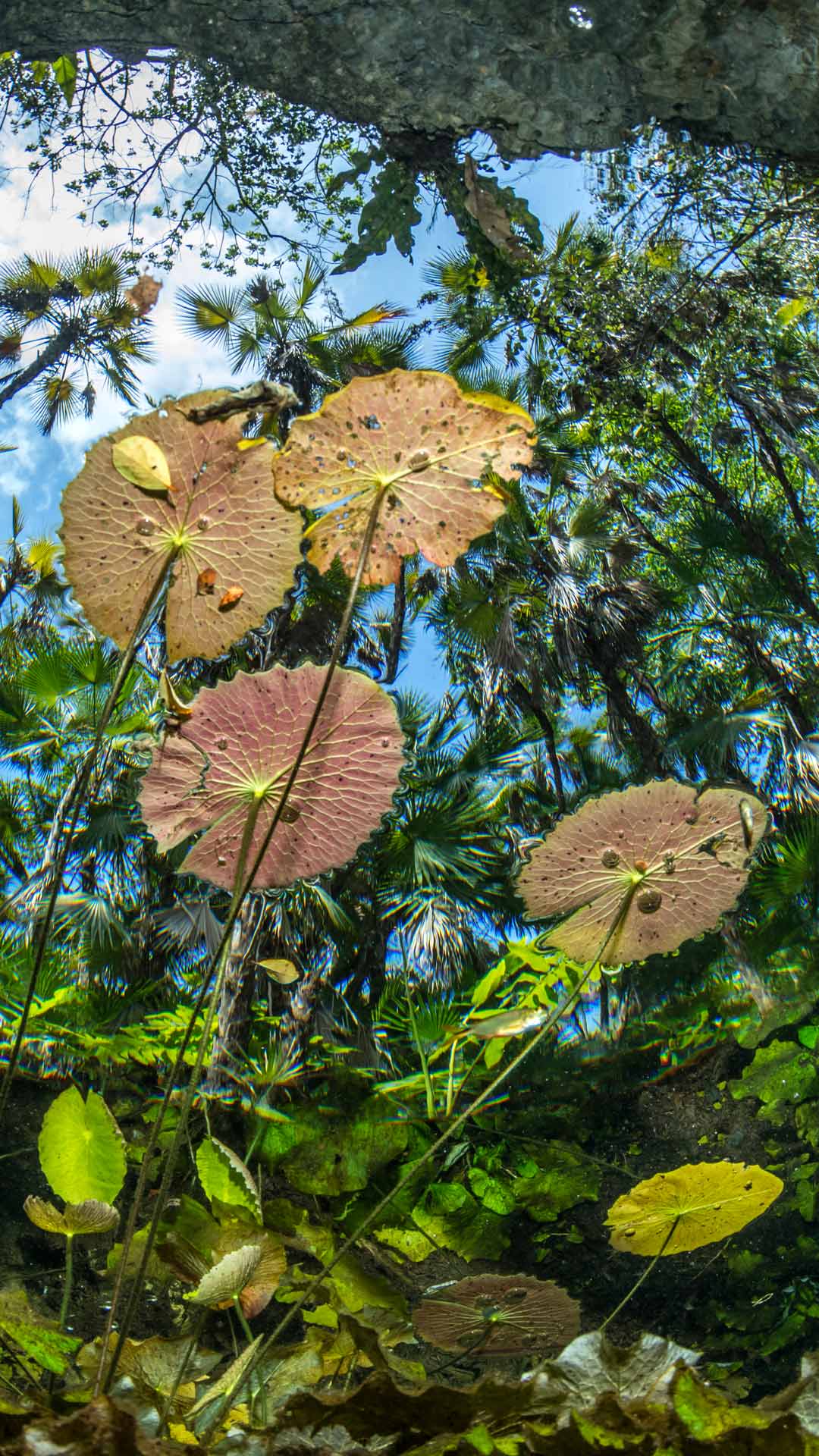 Nenúfares en la superficie del Cenote Nicte-Ha, Tulum, México (© Franco Banfi/NPL/Minden Pictures)