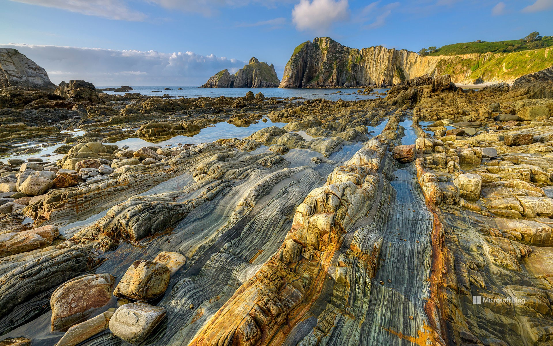 La Principauté des Asturies, en Espagne, est célèbre pour sa nature verdoyante, son riche héritage artistique et sa délicieuse cuisine. Parmi leurs trésors cachés, la Playa del Silencio est une plage en forme de coquillage qui offre une atmosphère paisible, isolée des zones urbaines et loin de l'agitation. Les falaises escarpées et le sable doré en font un lieu idéal pour se détendre. De plus, les grottes à proximité et les activités nautiques offrent des aventures palpitantes. La merveille géologique que vous pouvez voir ici est principalement constituée de quartzite, qui a remplacé progressivement la roche d'origine tout en conservant ses motifs et ses couleurs complexes, certaines ressemblant à du bois ancien.