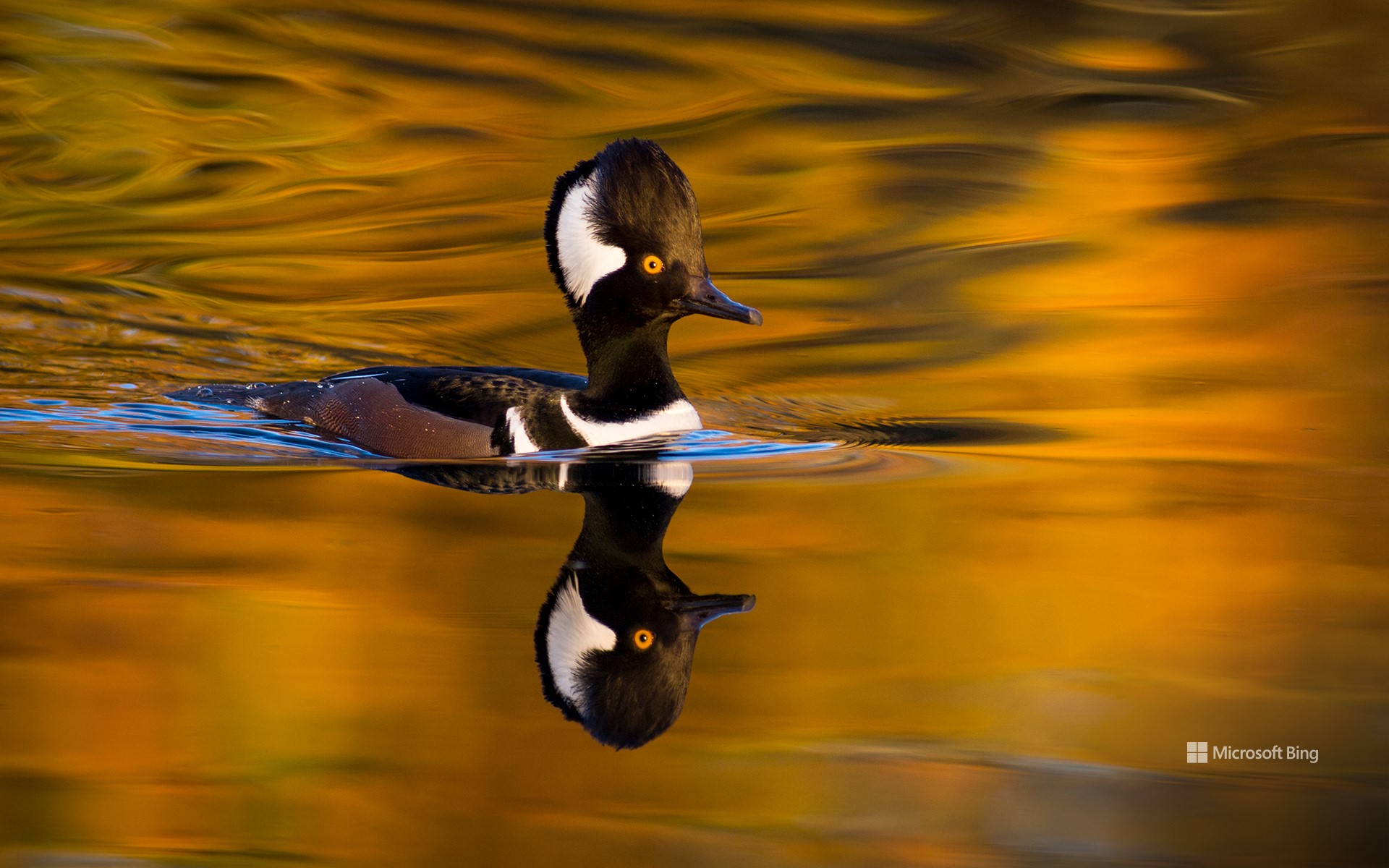 Dans les reflets dorés des rivières de l’Oregon, aux États-Unis, le harle couronné apparaît comme un bijou vivant. Le mâle arbore une huppe blanche et circulaire qu’il redresse en éventail, tandis que la femelle, brune et fine, l’accompagne d’un vol léger. Ces canards plongeurs, parmi les plus petits de leur famille, chassent sous l’eau, bondissant comme des éclats d’ombre dans la lumière du matin.