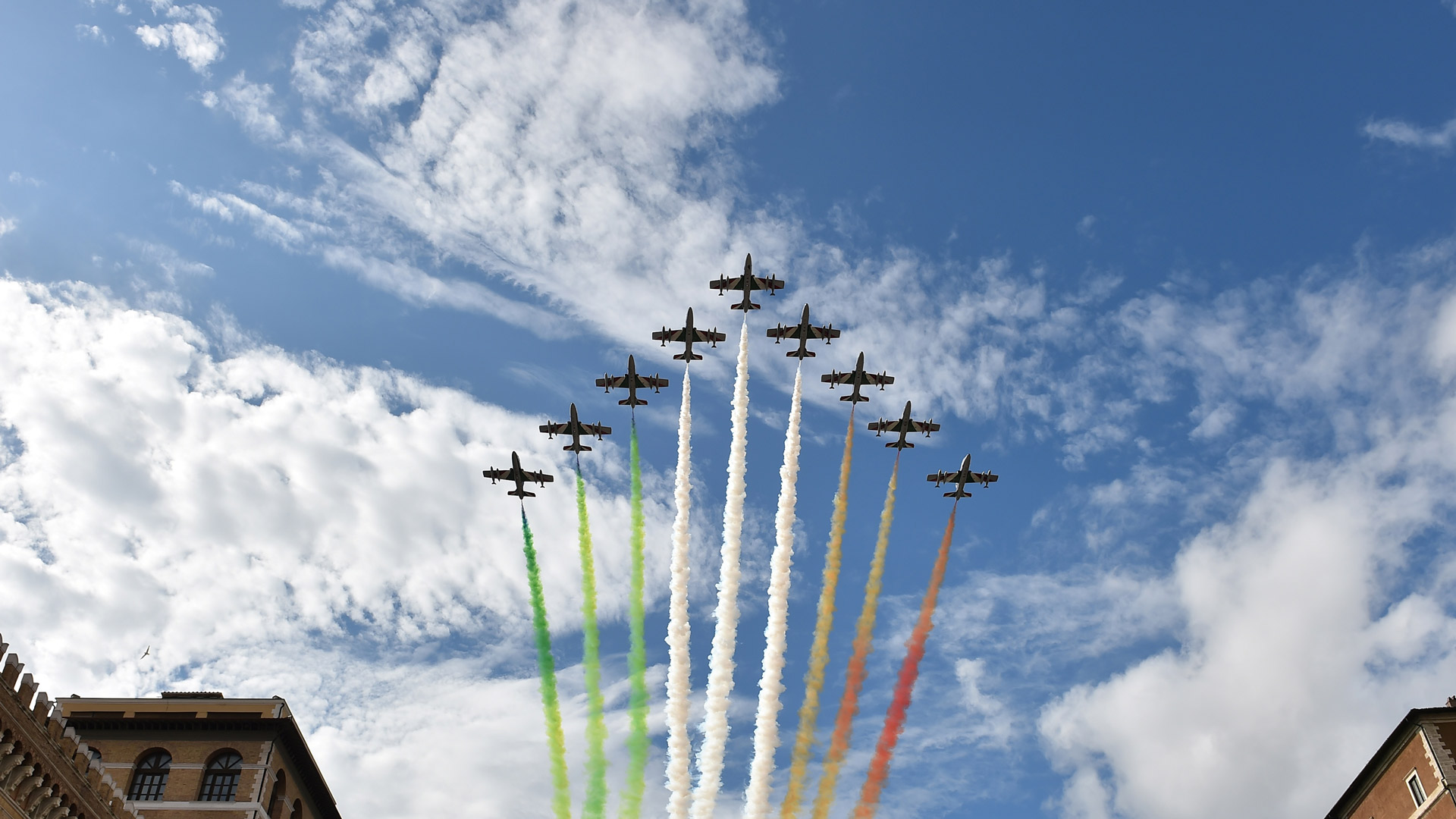 Frecce Tricolori in volo, Giornata della Liberazione, Roma (© Marie-Laure Messana/Getty Images)