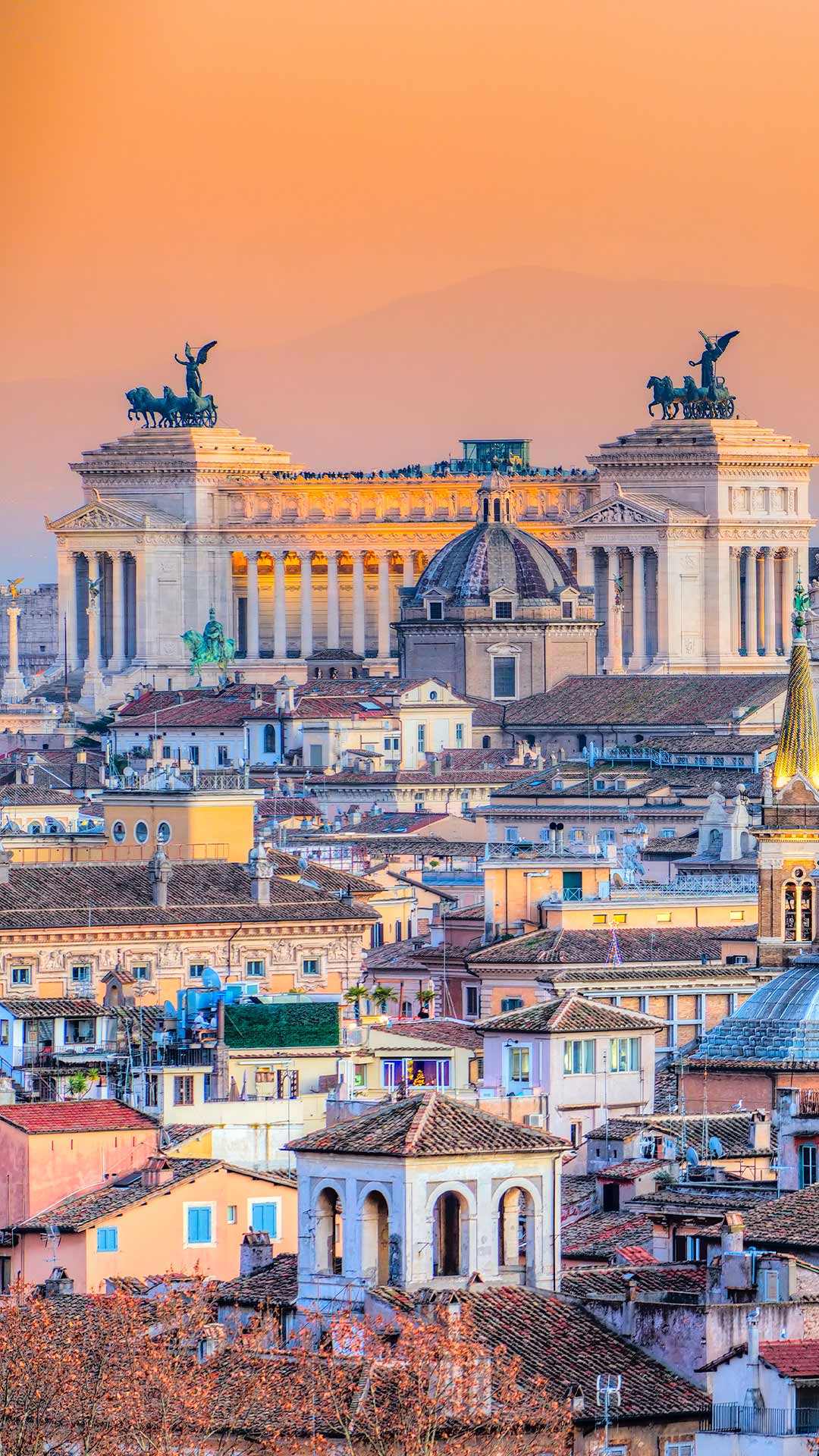 Vista su Piazza Venezia e il centro di Roma, Roma, Italia (© MasterLu/iStock/Getty Images Plus)