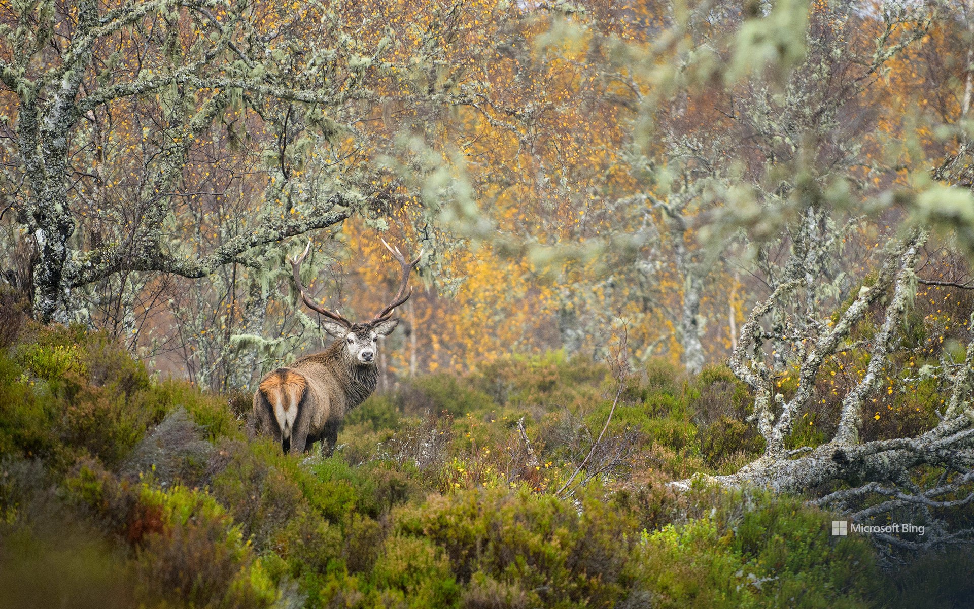 Cervo rosso nella Foresta di Conifere della Caledonia, Glen Affric, Highlands scozzesi, Scozia (© Terry Whittaker/Alamy)