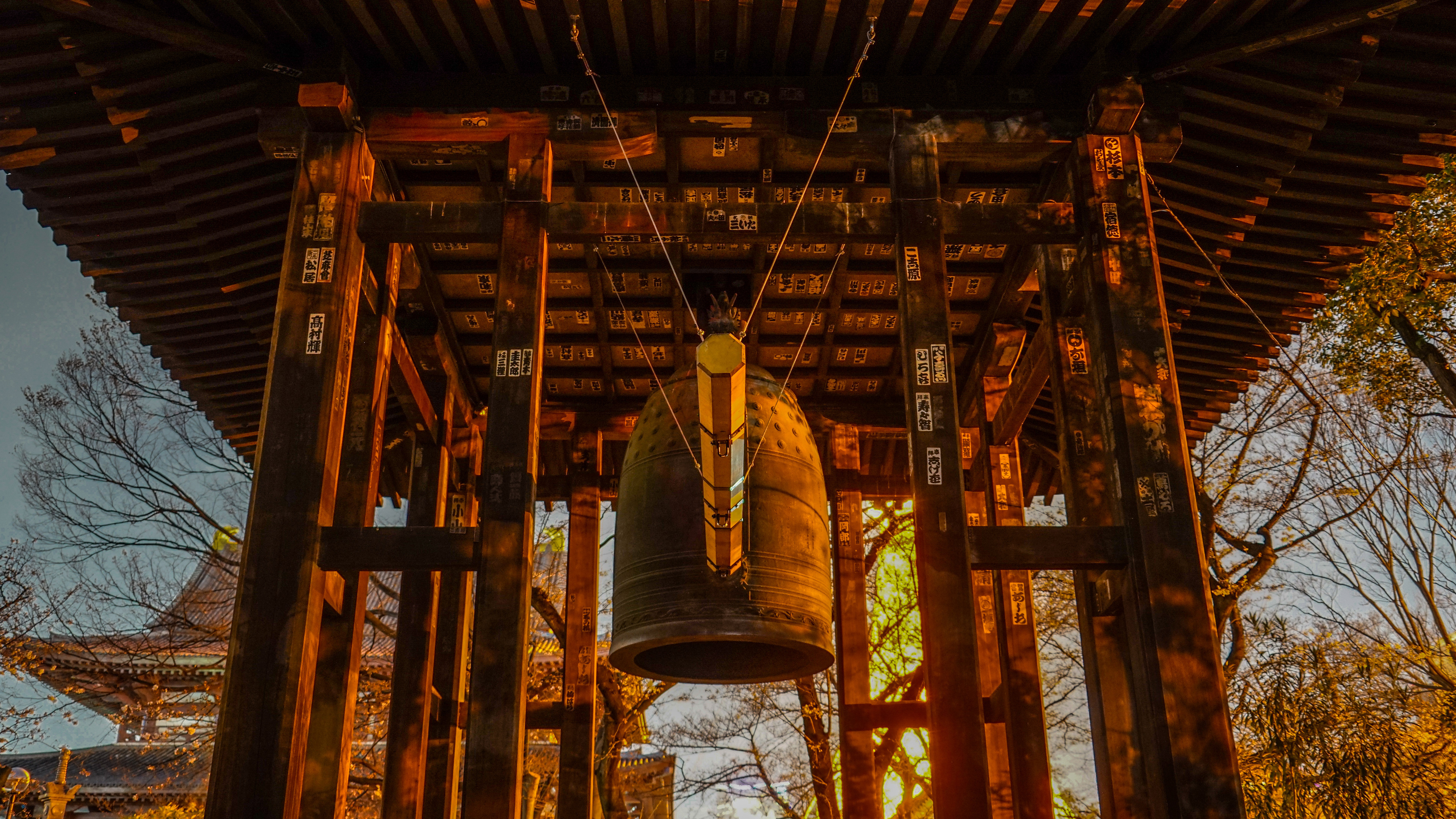 増上寺の梵鐘は、1673 年に鋳造された東日本で最大級の鐘で、寛永寺、浅草寺と並ぶ江戸三大名鐘に数えられています。現在の鐘楼堂は、戦災で焼失したものを再建したものですが、梵鐘は無事に残りました。