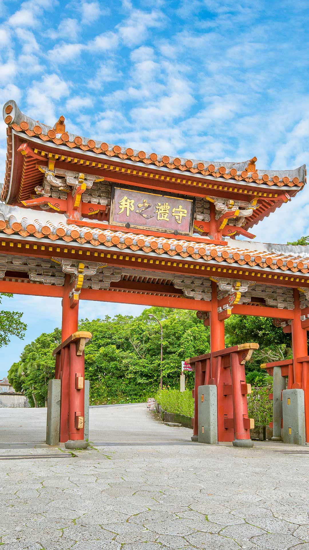 そして写真は、沖縄の象徴である首里城の守礼門です。守礼門は、琉球王国の栄華を物語る儀式用の門で、「守禮之邦(しゅれいのくに)」と書かれた扁額が掲げられています。尚清王の命令で 16 世紀に建てられ、王朝の高官たちはここで中国からの使節団を迎えていました。第二次世界大戦で焼失し、現在の守礼門は 1958 年に復元されたものです。