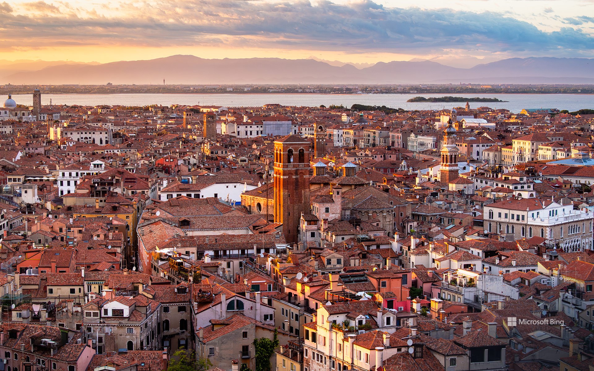 Vista do alto, Veneza parece um labirinto mágico cercado por água — mas seu verdadeiro encanto está nas ruas e canais históricos. Fundada no século V sobre um conjunto de ilhas na Lagoa Veneziana, a cidade nasceu em meio a áreas pantanosas e se transformou em uma potência marítima. Na Idade Média, tornou-se um centro vital de comércio entre a Europa e o Oriente, acumulando riqueza e impulsionando um florescimento cultural sem igual.