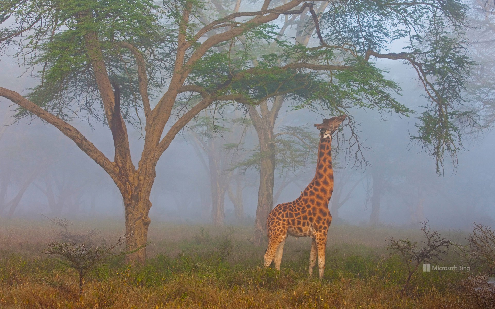 纳库鲁湖国家公园中的罗氏长颈鹿,肯尼亚 (© Theo Allofs/Minden Pictures)