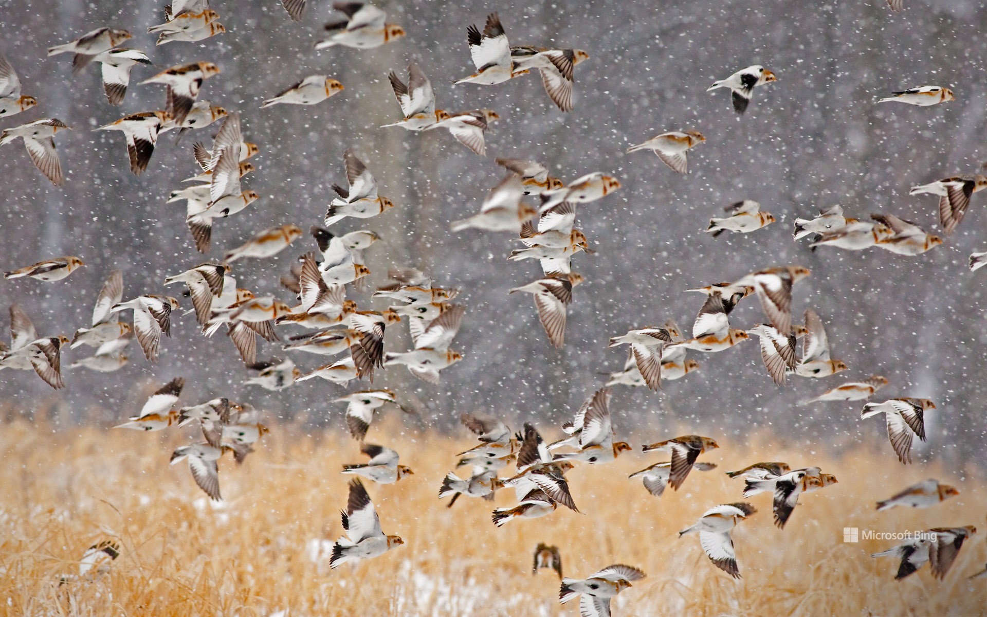 暴雪中成群的雪鹀,美国纽约 (© Marie Read/Minden Pictures)