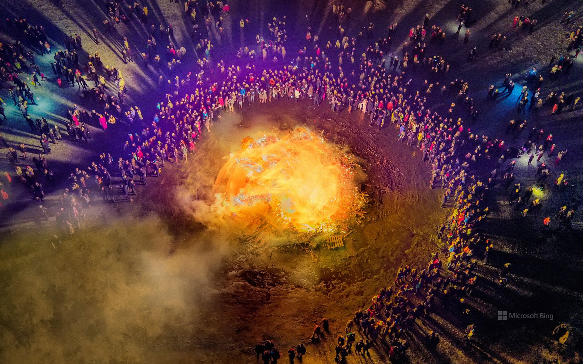 跨年夜的篝火晚会,冰岛雷克雅未克 (© Ragnar Th Sigurdsson/Alamy)