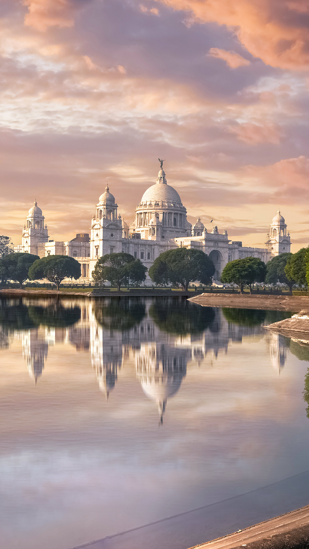 维多利亚纪念堂是加尔各答的地标之一,是一座完全由白色大理石建造而成的宏伟英国时代建筑。 纪念堂采用印度-撒拉逊复兴主义风格建造,混合了英国和莫卧儿元素,并受到伊斯兰、威尼斯、埃及和德卡尼风格的影响。它由当时的威尔士亲王(后来成为乔治五世国王)于1906年至1921年间建造,被献给英国维多利亚女王。