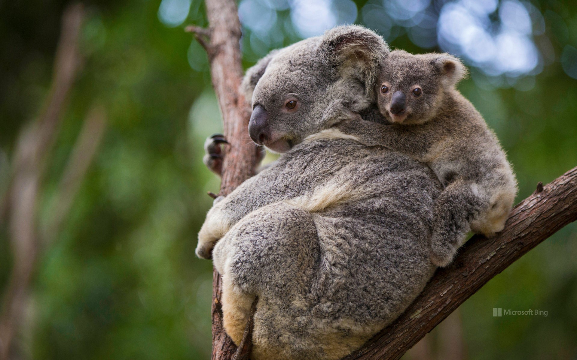考拉熊妈妈和8个月大的宝宝,澳大利亚昆士兰 (© Suzi Eszterhas/Minden Pictures)