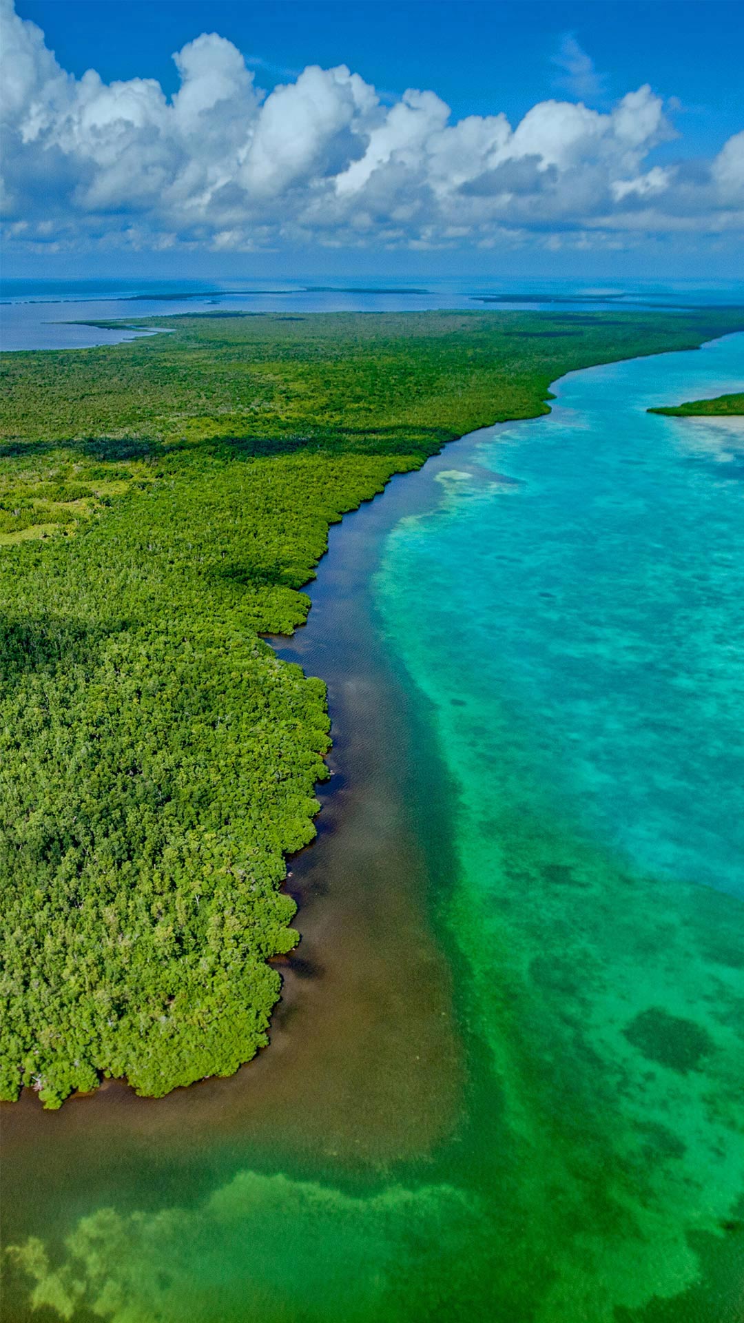 这里的特色是灯塔环礁上的红树林,灯塔环礁是珊瑚礁系统中三个主要的环礁之一。大多数游客到访灯塔环礁就一个目的:在它的中心有一个大蓝洞,这是一个直径1043英尺,深407英尺的海洋天坑,是水肺潜水员必去的目的地。1971年,海洋学家雅克·库斯托勘探绘制了蓝洞的深度图,大蓝洞随即名声大噪。