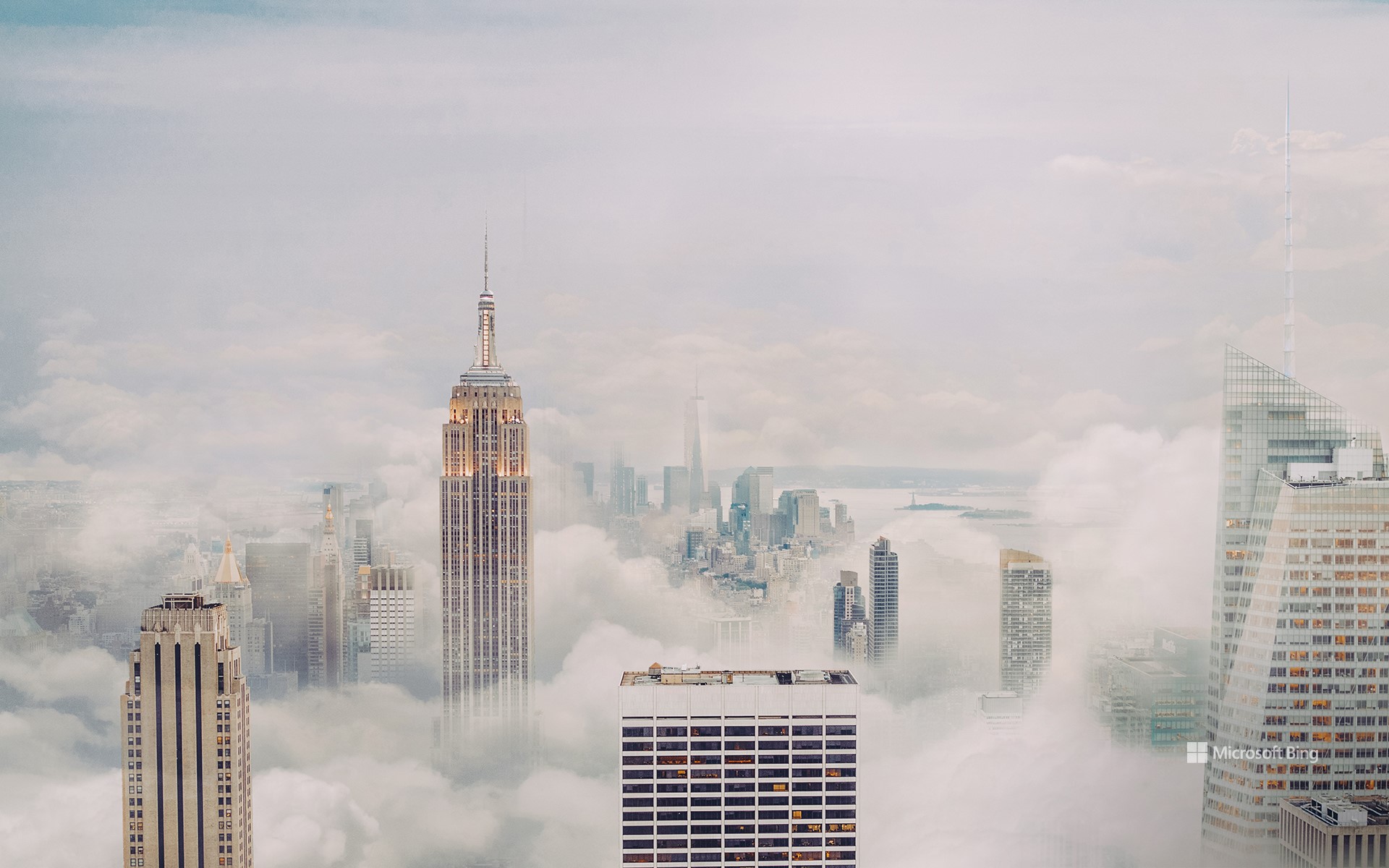 云层中的纽约市天际线 (© Orbon Alija/Getty Images)