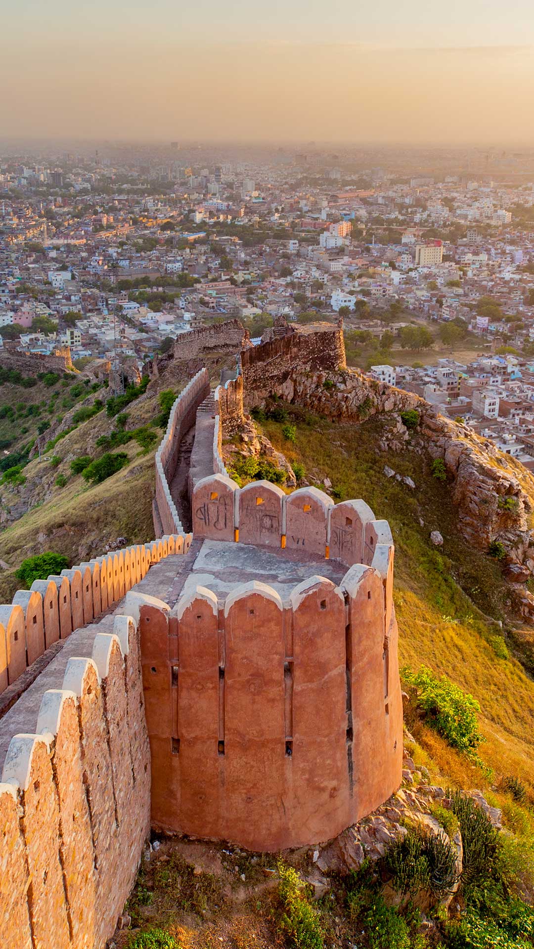 从纳哈加尔城堡鸟瞰斋浦尔,印度 (© Sean3810/iStock/Getty Images Plus)
