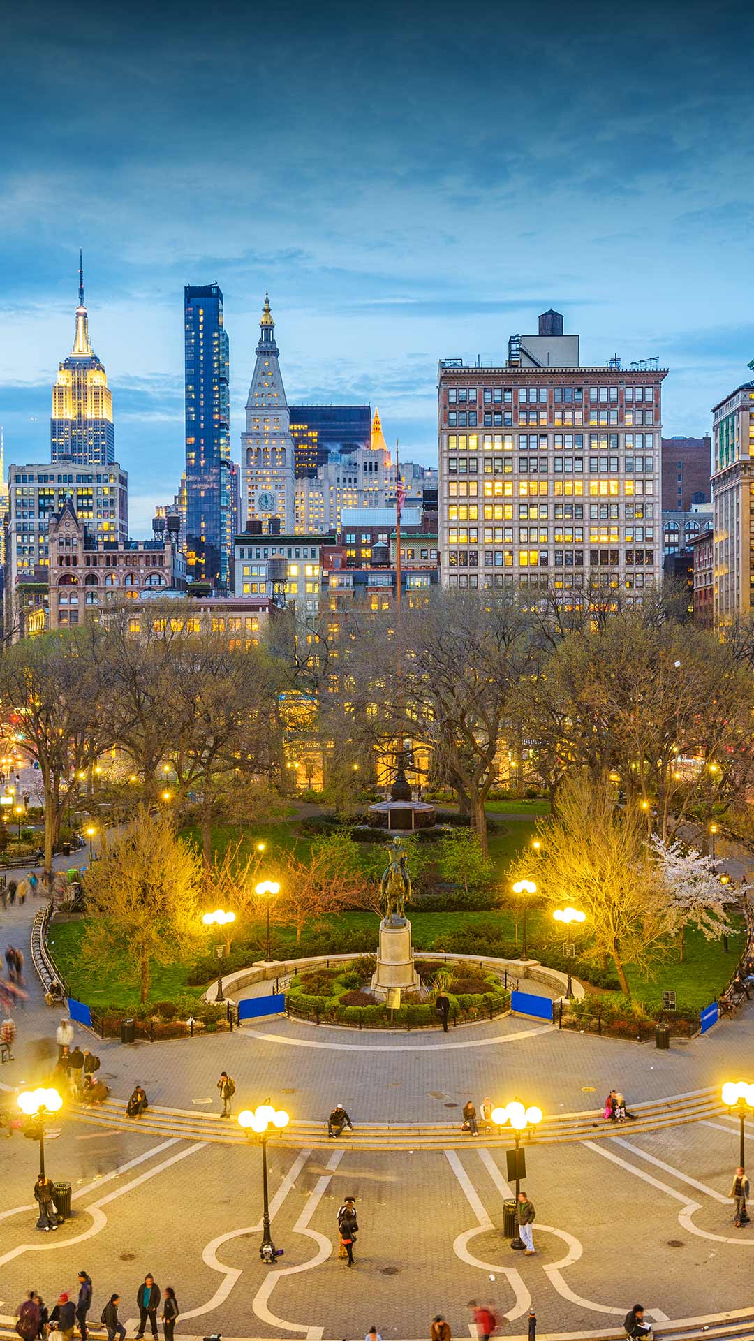 暮色中的曼哈顿下城联合广场,纽约,美国 (© Sean Pavone/Getty Images)