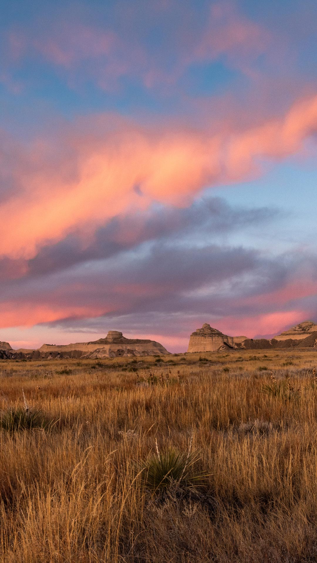 如今,这座占地近3000英亩的纪念碑包括两座主要悬崖——北部的斯科茨悬崖和南部的南悬崖。它还保护着五处显著的岩石突起:圆顶岩、鹰岩、皇冠岩、马鞍岩和哨兵岩。在地面上,骡鹿与黑尾草原犬鼠一同觅食,而豺狼在周围游荡,短草在风中摇曳。更高处,景观发生变化,刺叶丝兰和耐寒灌木依附于岩石斜坡,而大角羊则轻松地在悬崖间穿行。尽管马车早已消失,斯科茨悬崖仍作为历史与地形的向导屹立不倒。