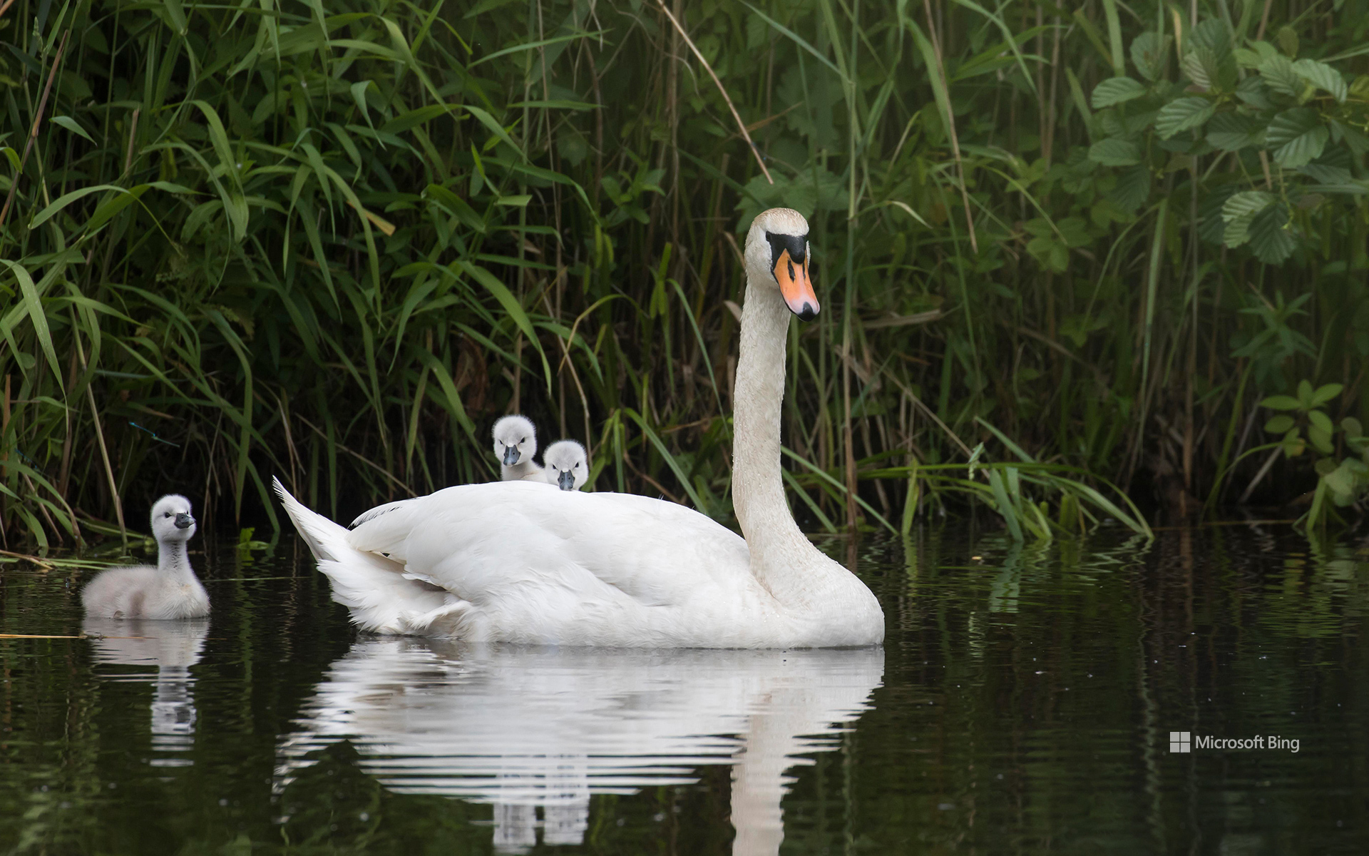 Sanft gleitet ein Höckerschwan mit seinen Küken über die ruhige Wasseroberfläche. Diese Szene lässt sich an vielen Seen und Flusslandschaften beobachten – vom Bodensee über die Mecklenburgische Seenplatte bis hin zu renaturierten Flussarmen in zahlreichen Städten. Höckerschwäne finden dort geschützte Uferzonen und reichlich Wasserpflanzen, die ihre wichtigste Nahrungsquelle bilden.
