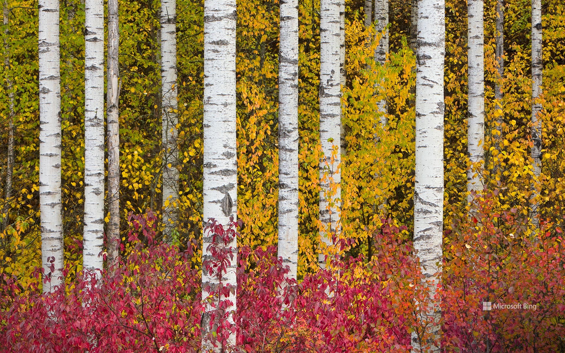 Aspen trees in autumn, Stewart-Cassiar Highway, British Columbia, Canada (© Yva Momatiuk and John Eastcott/Minden Pictures)