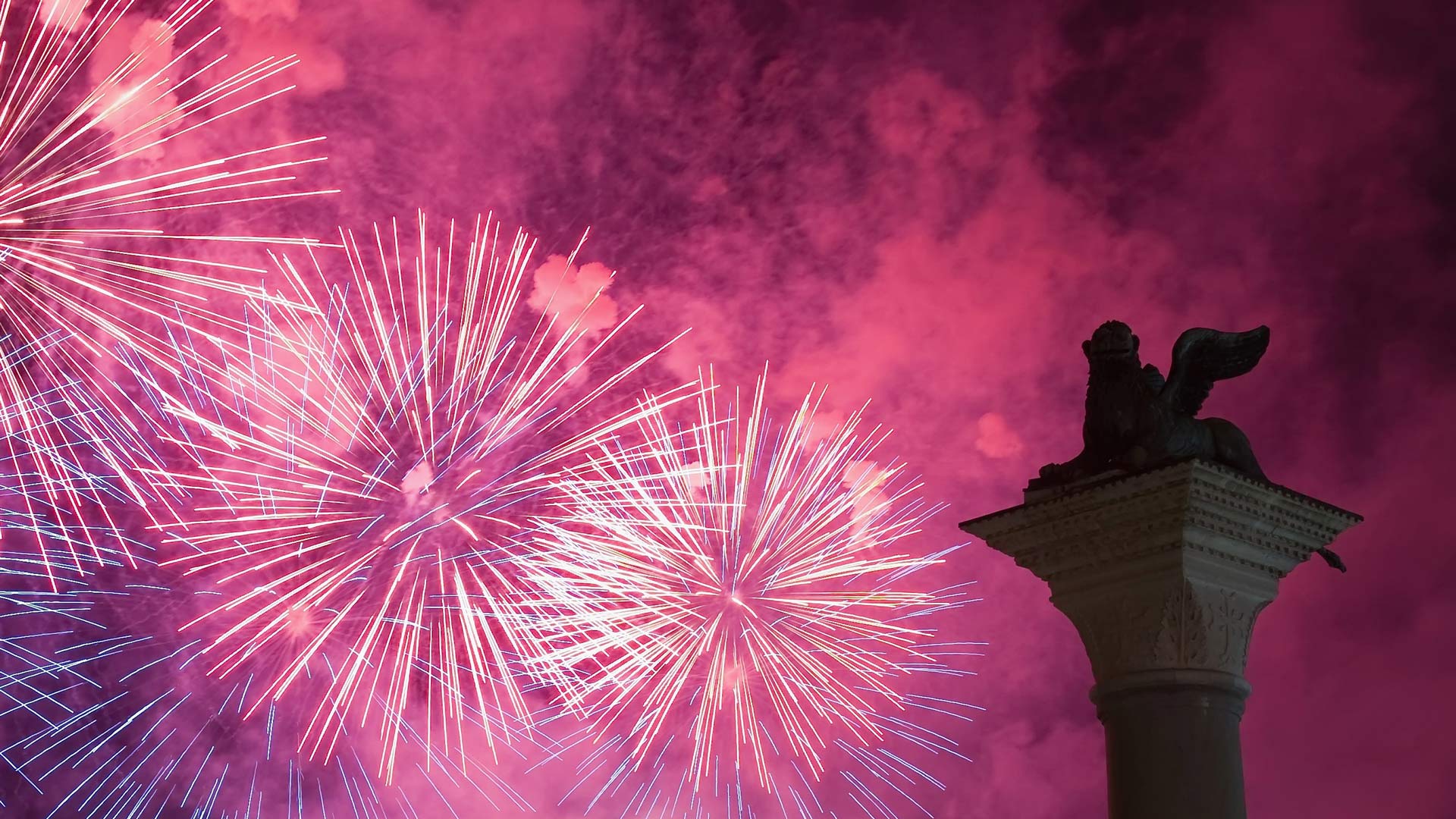 Nella notte tra il 31 dicembre e il 1° gennaio, Venezia si illumina. I fuochi d’artificio si riflettono sulla laguna, trasformandola in uno specchio di colori e scintille. Sopra ogni cosa, il Leone di San Marco veglia come simbolo eterno della città, custode di storie e tradizioni che attraversano i secoli.