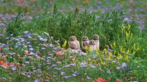 花丛中的小穴鸮们,美国科罗拉多州 (© Roberta Olenick/Alamy)