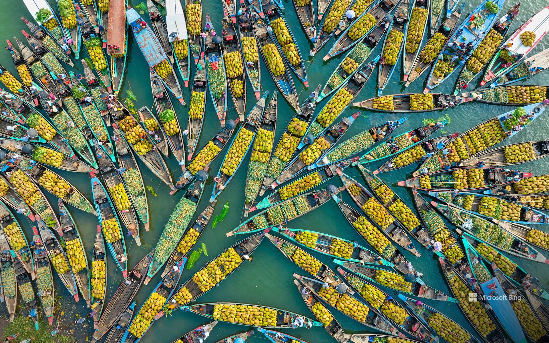 Schwimmender Markt, Karnaphuli-Stausee, Rangamati, Bangladesch (© Azim Khan Ronnie/Amazing Aerial Agency)