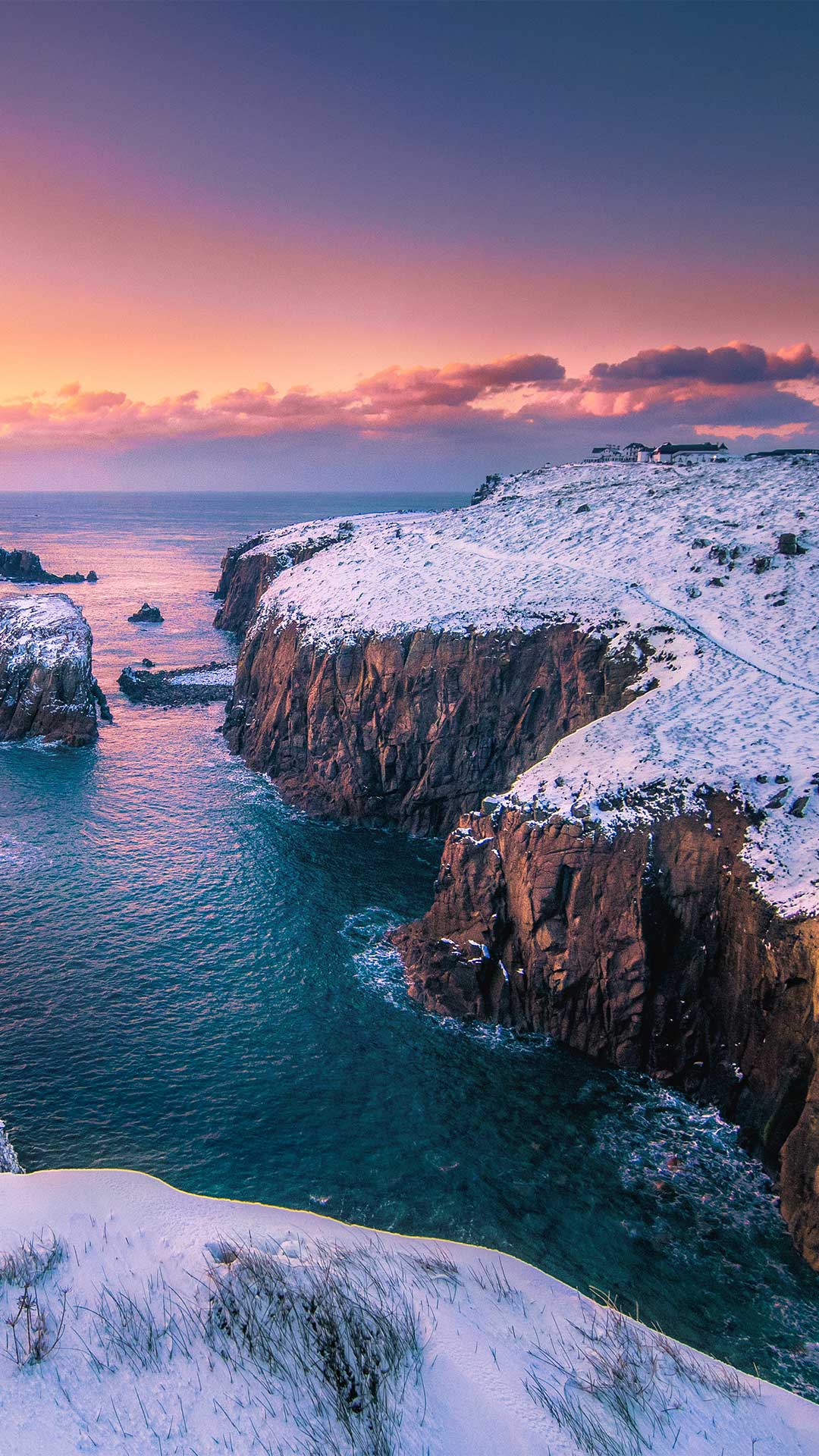 Sentiero costiero della Cornovaglia coperto di neve, Land's End, Cornovaglia, Inghilterra (© Josef FitzGerald-Patrick/Getty Images)