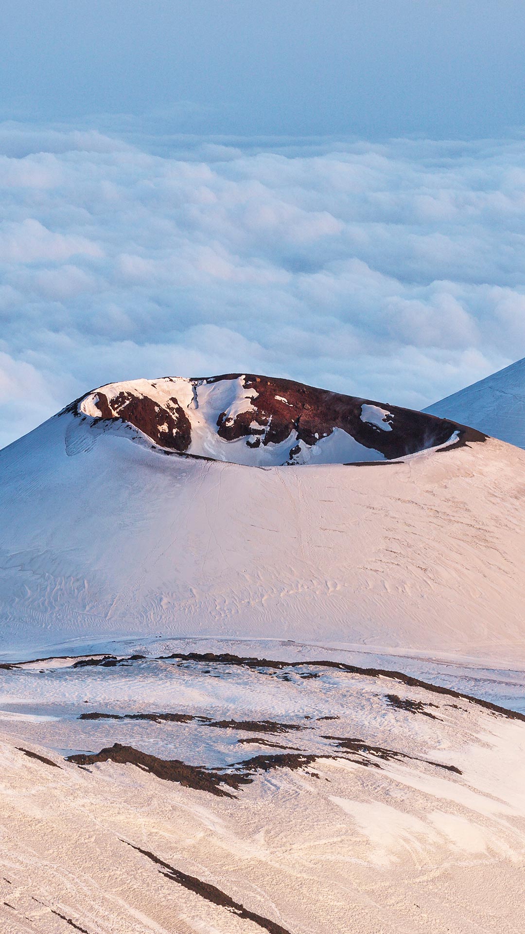 L’Etna domina la Sicilia orientale con i suoi 3.403 metri di altezza, innevato d’inverno e maestoso tutto l’anno. È uno stratovulcano, cioè un vulcano nato dall’accumulo di strati di lava e cenere che, eruzione dopo eruzione, hanno costruito la sua mole imponente. Non è solo il più grande vulcano attivo d’Europa, ma anche un simbolo che da millenni incute rispetto e meraviglia, capace di trasformare il paesaggio e di alimentare miti e leggende.