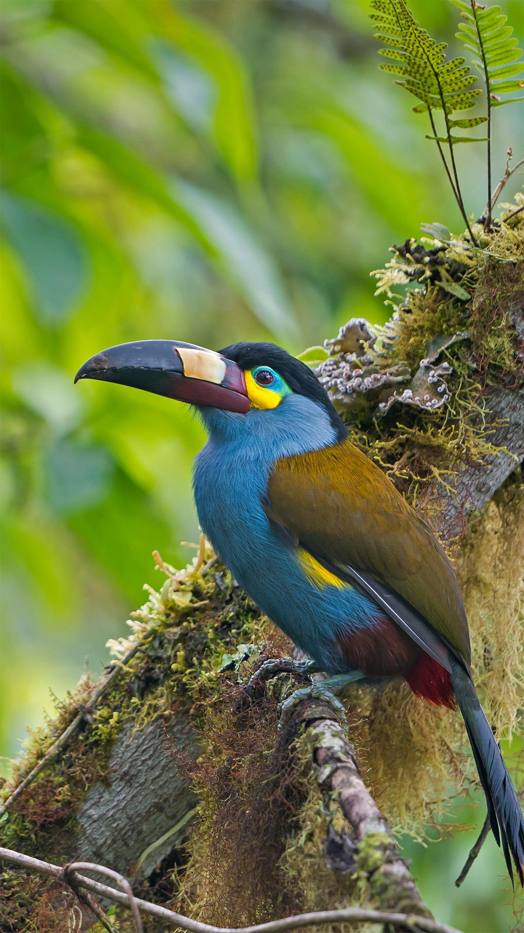 树干上的扁嘴山巨嘴鸟,厄瓜多尔 (© Tui De Roy/Minden Pictures)